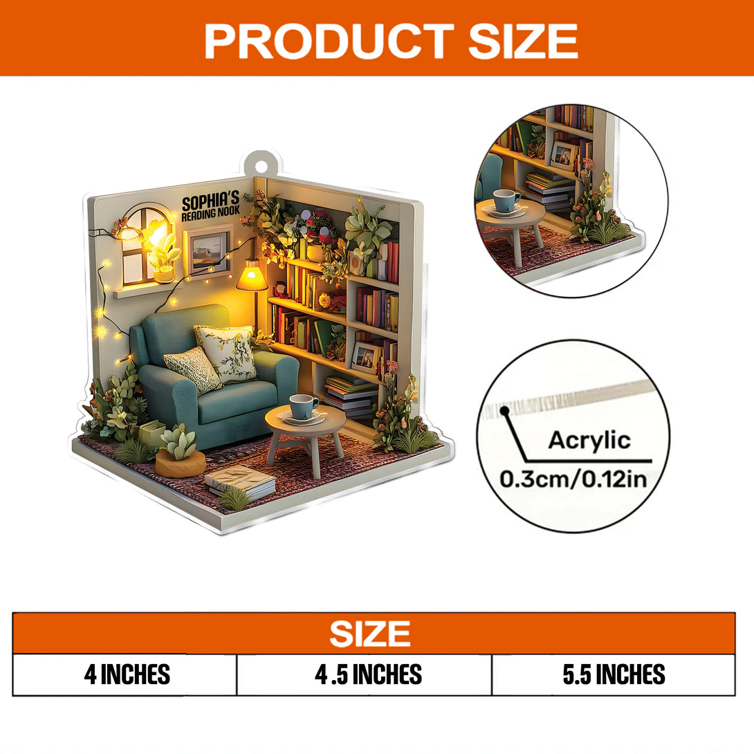 2D FLAT Dreamy Cozy Reading Nook - Personalized Reading Acrylic Ornament, Reading Room Christmas Ornament, Bookworm Gift