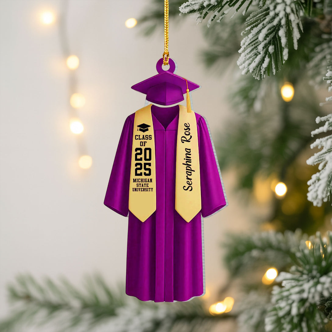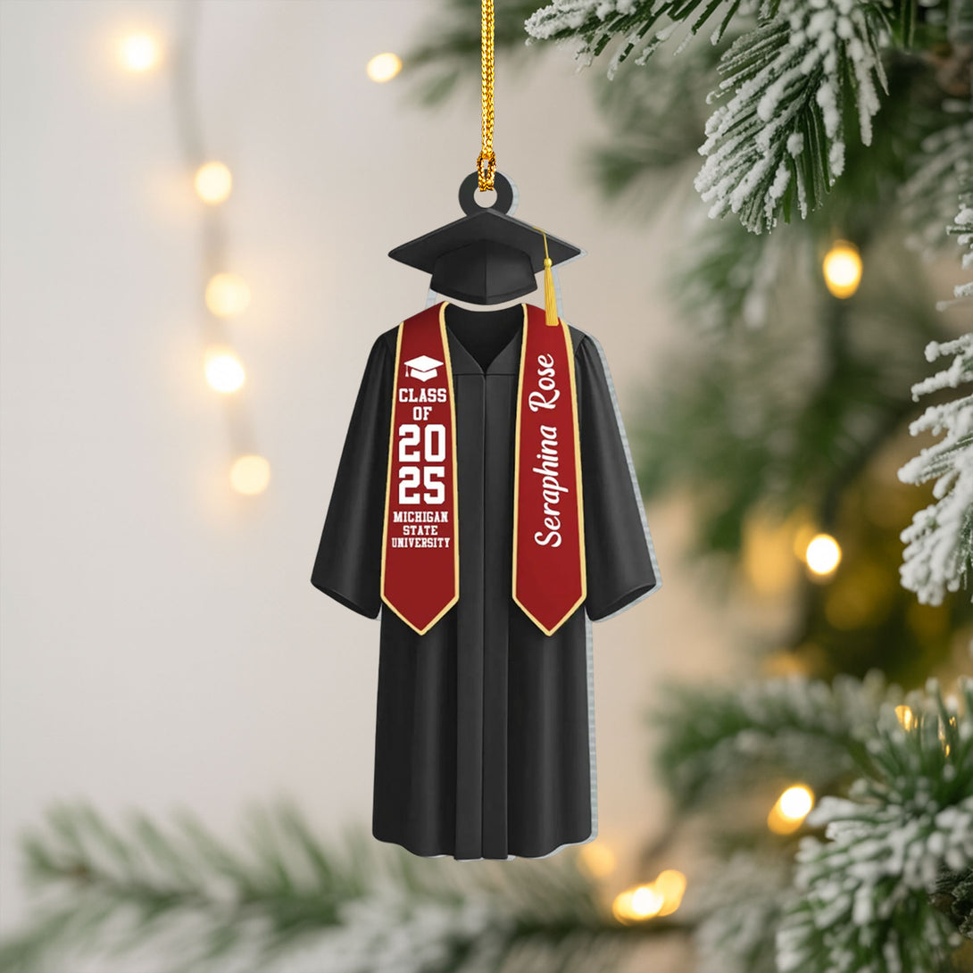 Acrylic Graduation Ornament 2025 - Custom Cap And Gown Christmas Decoration With Name And School, Graduation Gift And Senior Year Keepsake