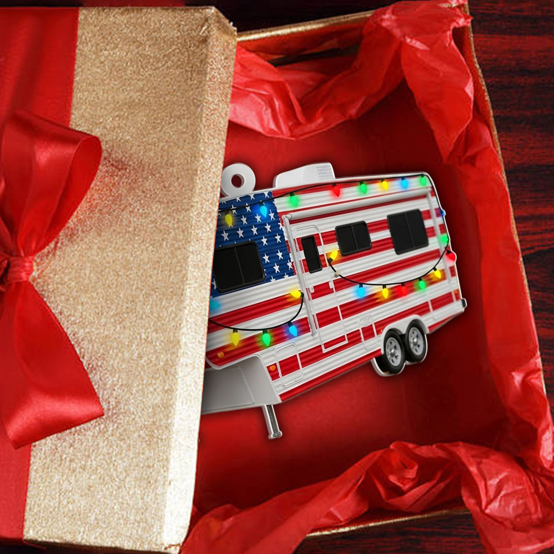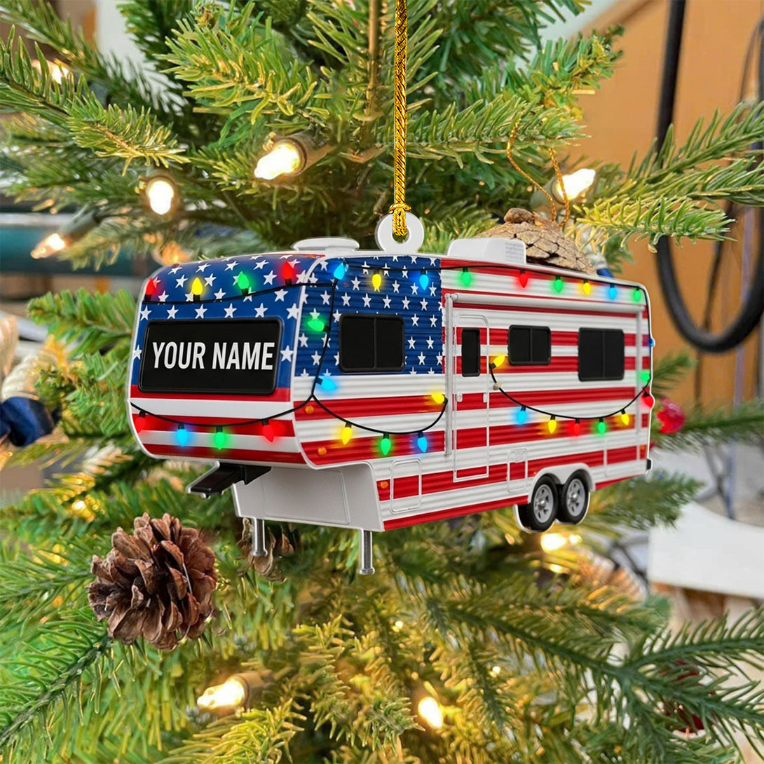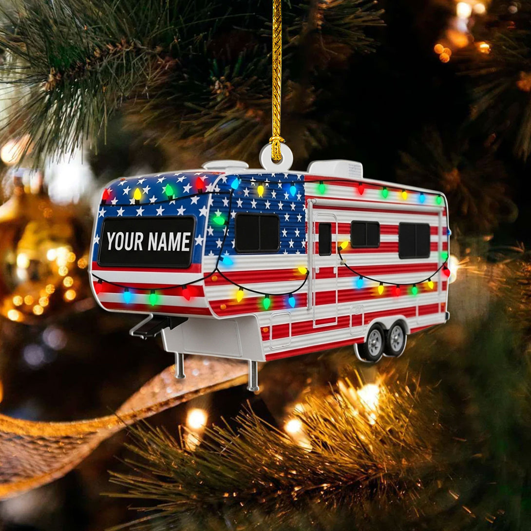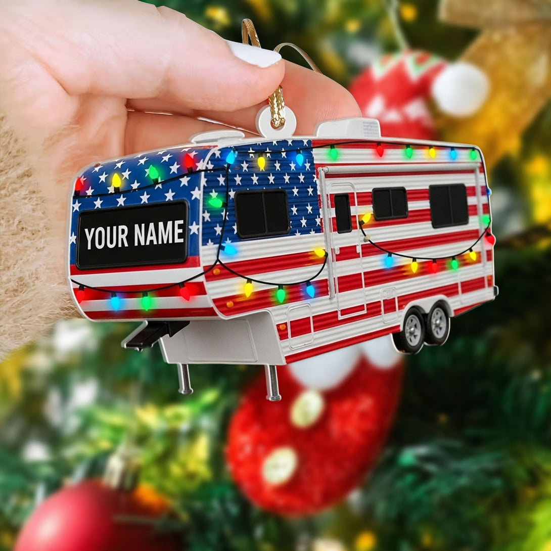 American Flag Camper Ornament 2025 - Personalized Acrylic Rv Decoration, Patriotic Christmas Keepsake For Outdoor Families