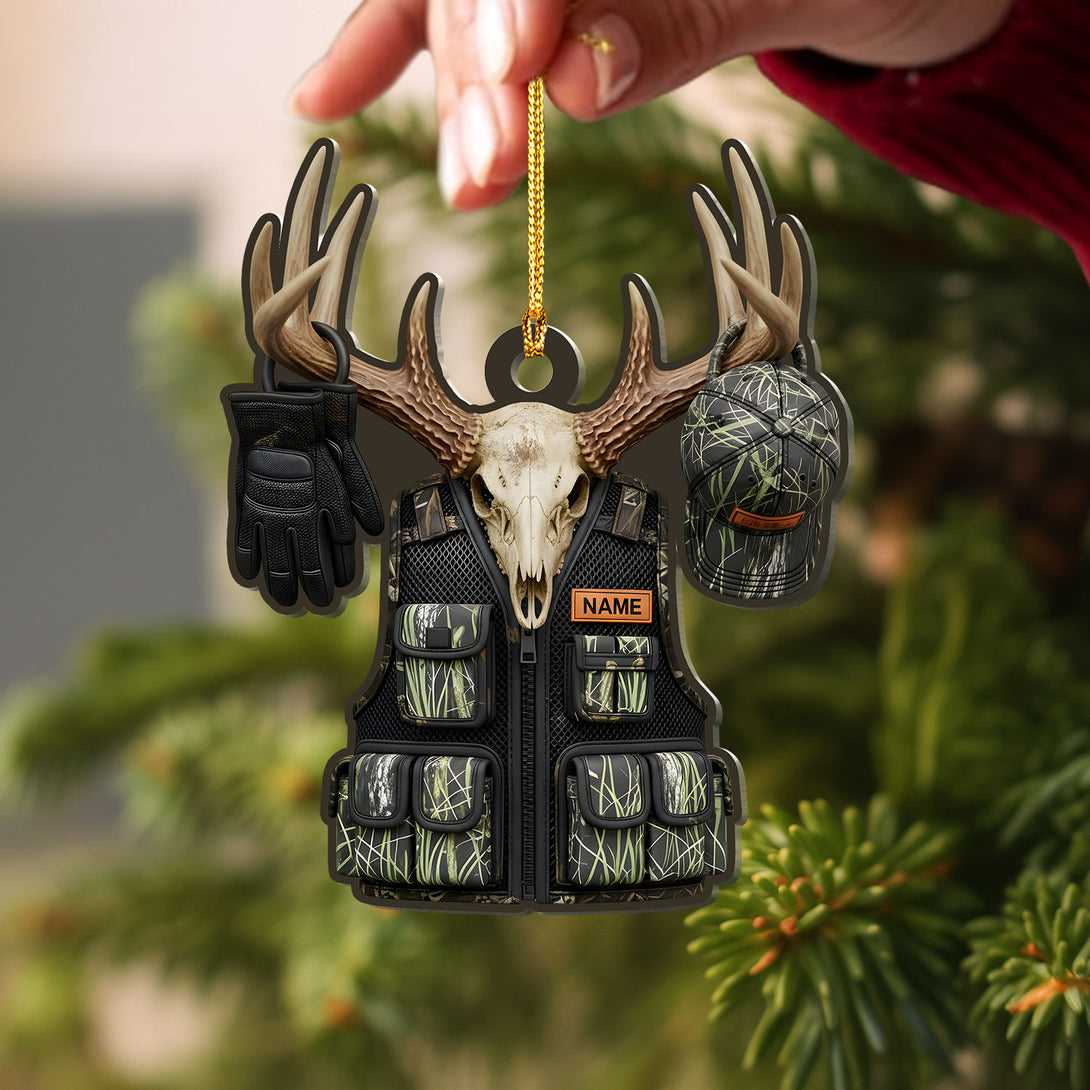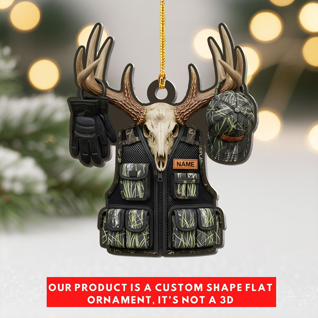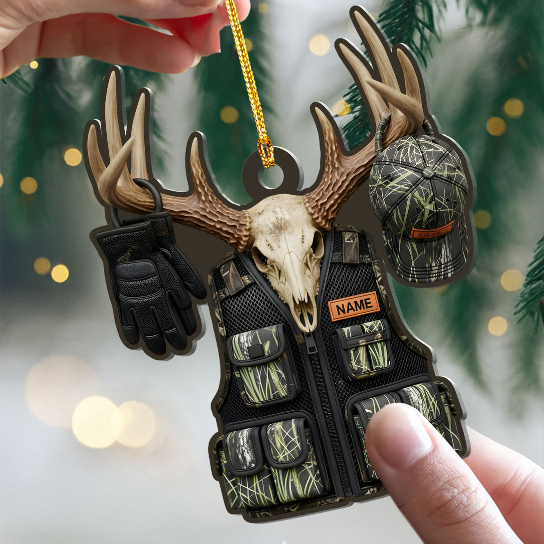 Antler Skull Ornament With Gear - Custom Deer Hunting Christmas Tree Ornament, Stylish Holiday Decoration For Outdoor Theme Decor