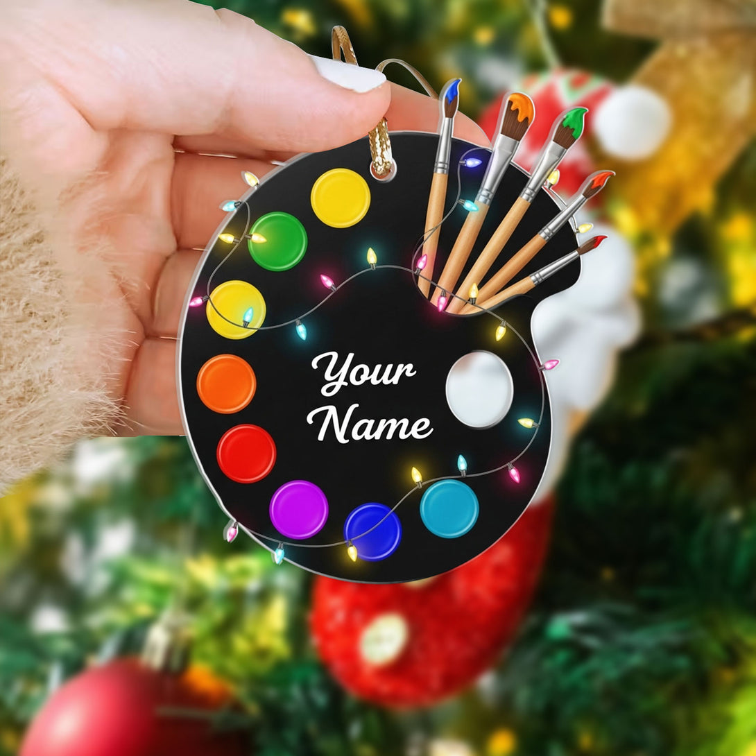 Artist Palette Personalized Christmas Ornament 2025 - Custom Paint Brush Acrylic Decoration, Gift For Artists, Art Teachers, And Students