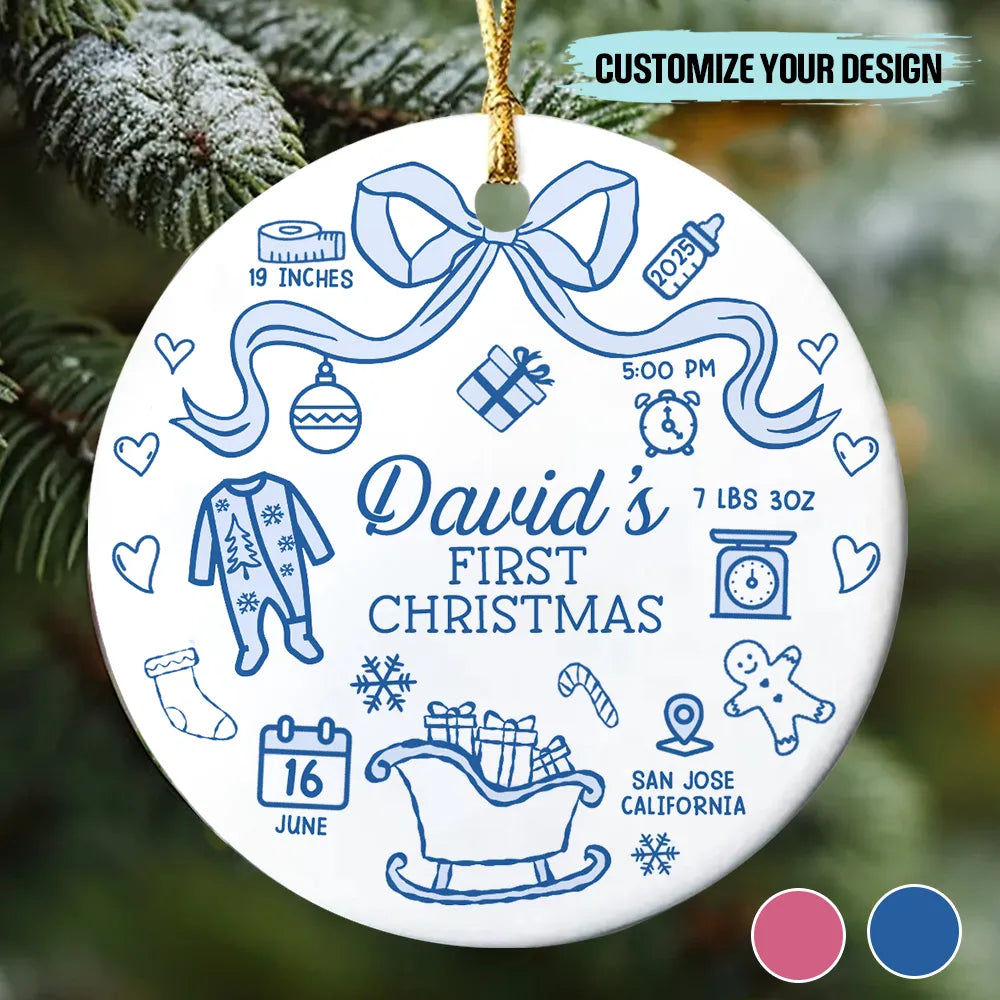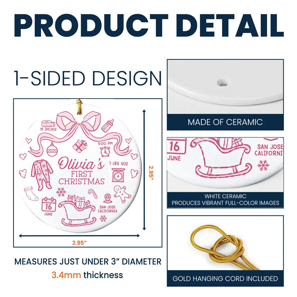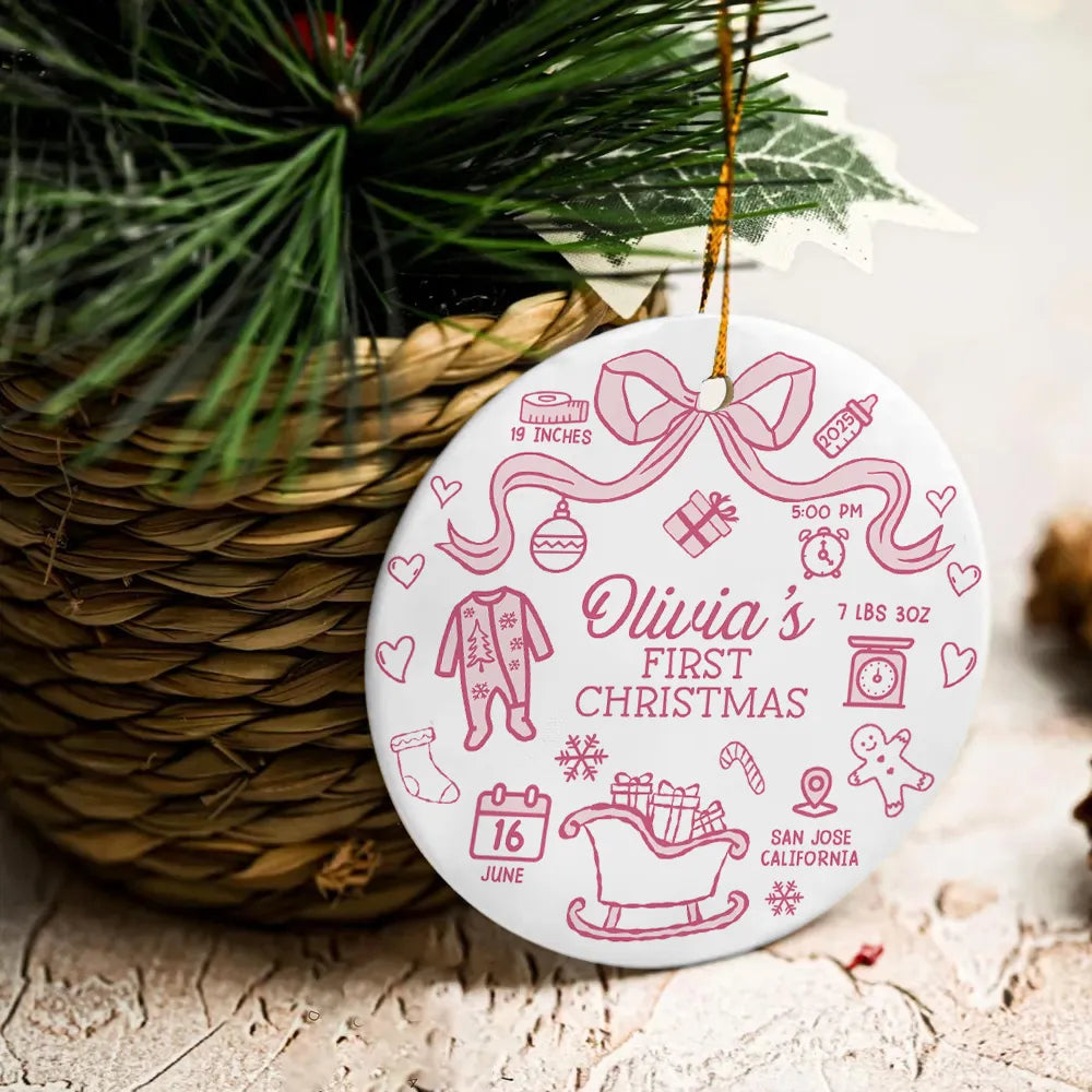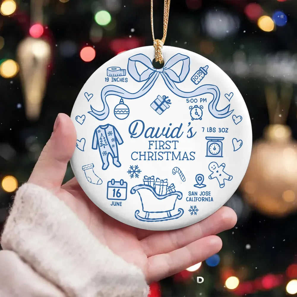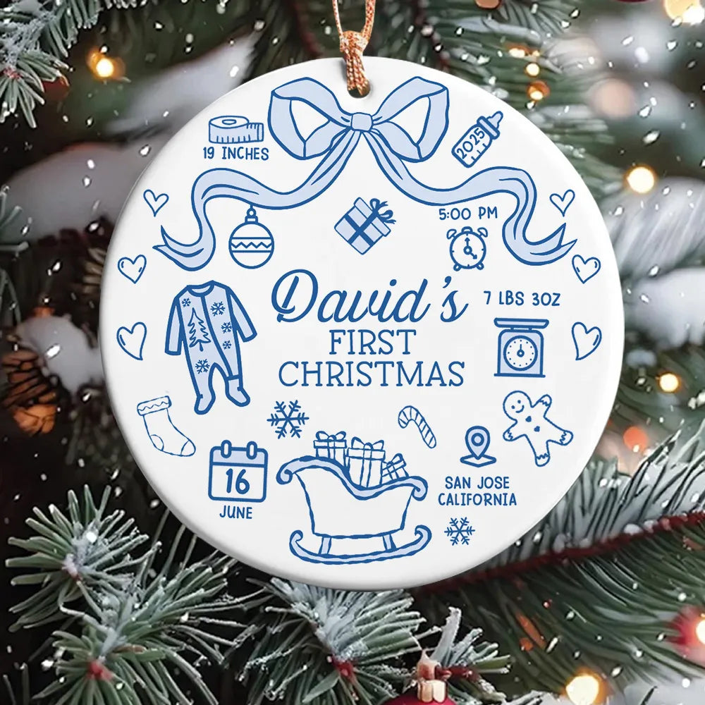 Personalized Baby’s First Christmas Ornament Ceramic – Custom Name & Date Holiday Gift for New Parents