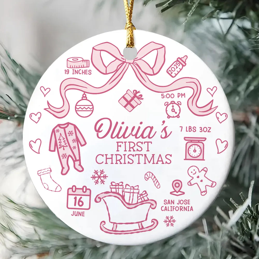 Celebrate the joy of a newborn’s very first holiday season with our Personalized Baby’s First Christmas Ceramic Ornament. This keepsake is thoughtfully designed to capture all the precious details — from baby’s name, birth date, time, weight, length, and even location — turning it into a one-of-a-kind treasure that families will cherish for years.
