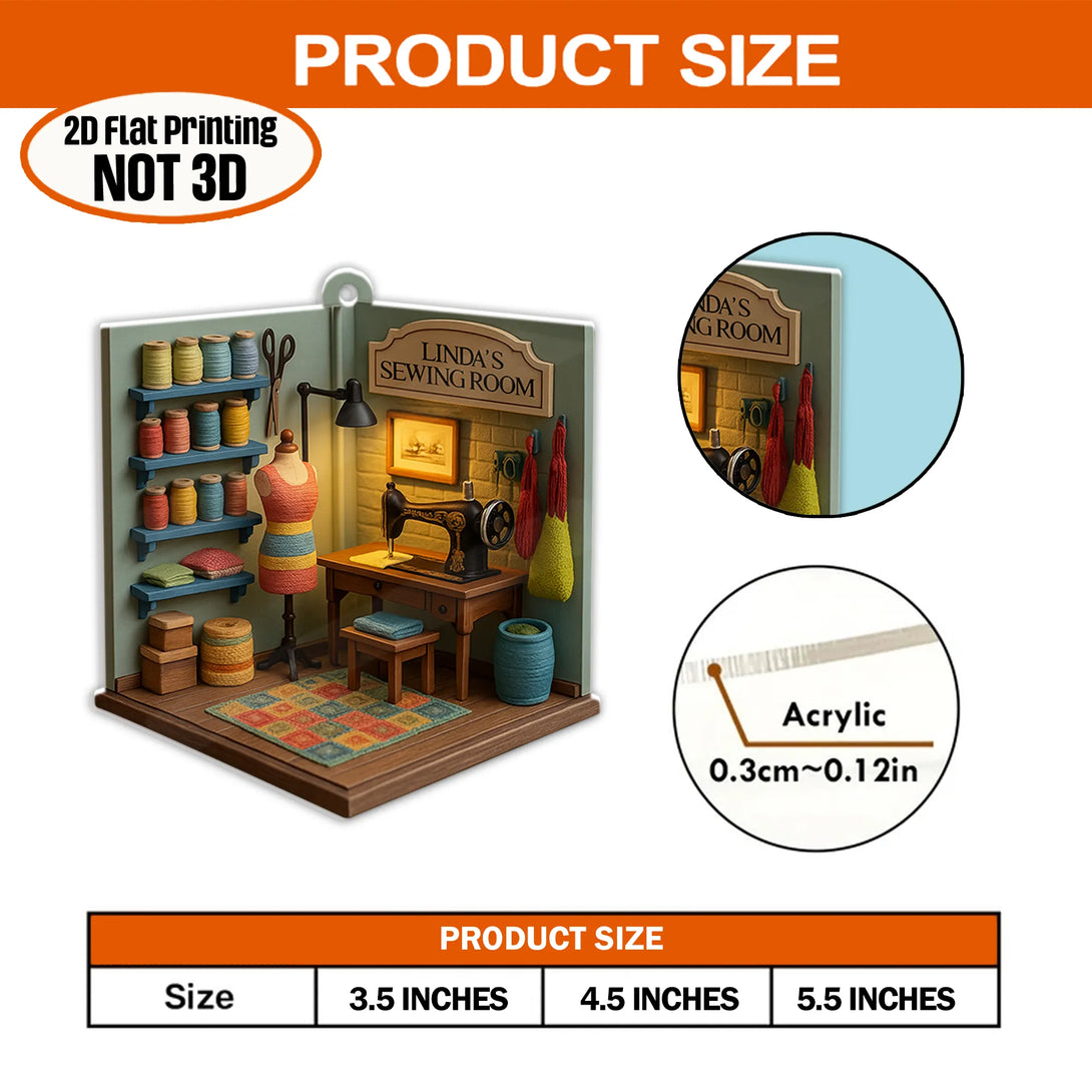 Cozy Sewing Room - Personalized 2D Flat 2-side Printed Acrylic Car Ornament