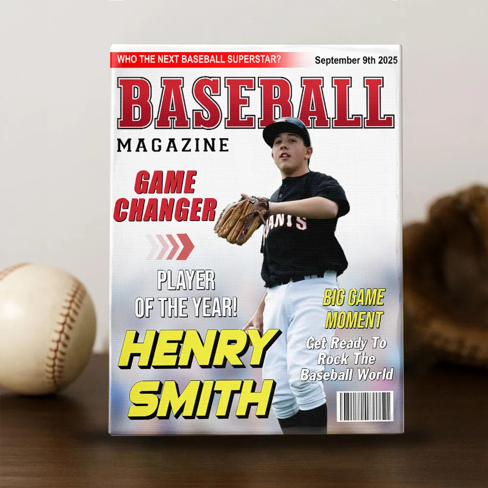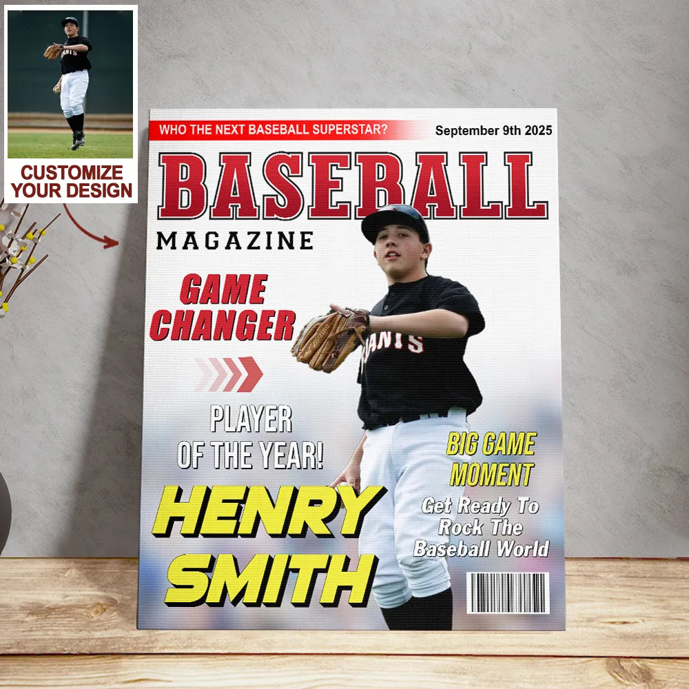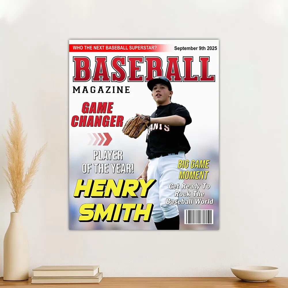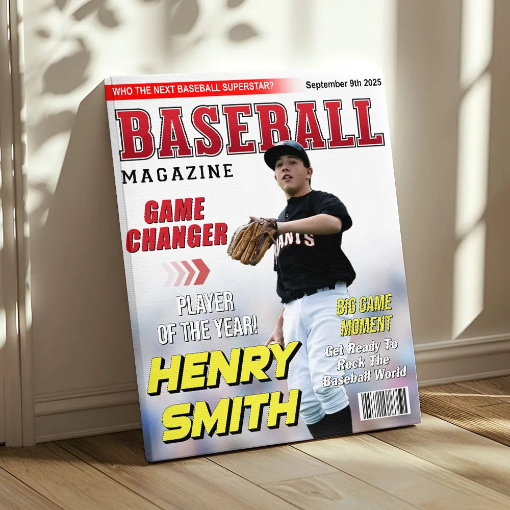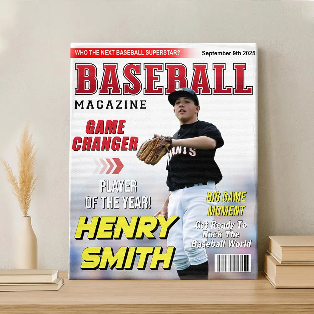 Custom Baseball Magazine Cover Canvas Poster – Personalized Gift for Baseball Players & Fans