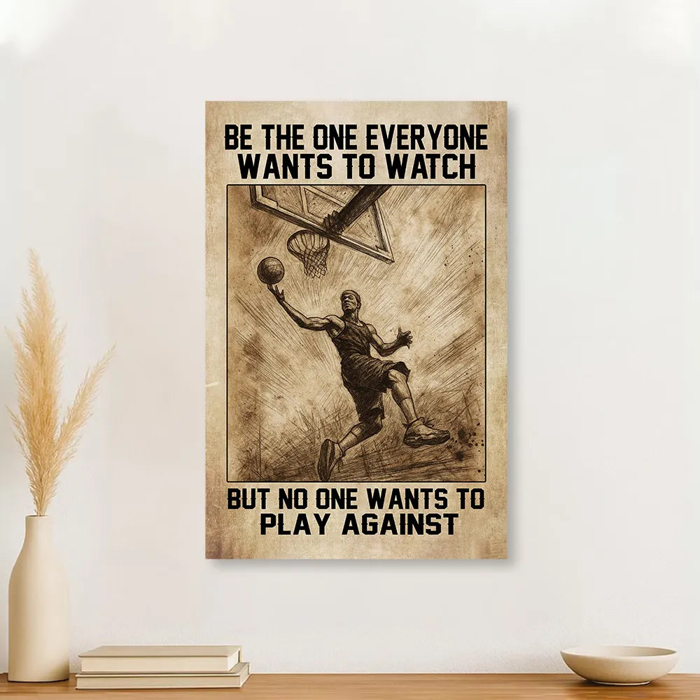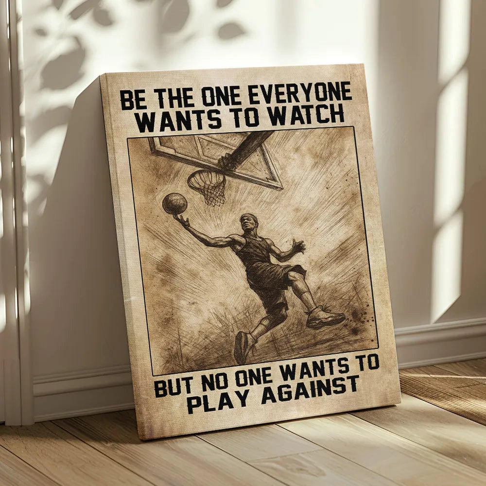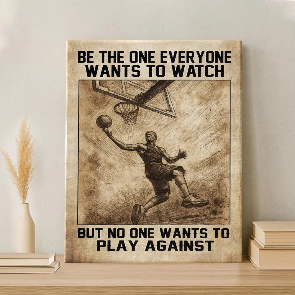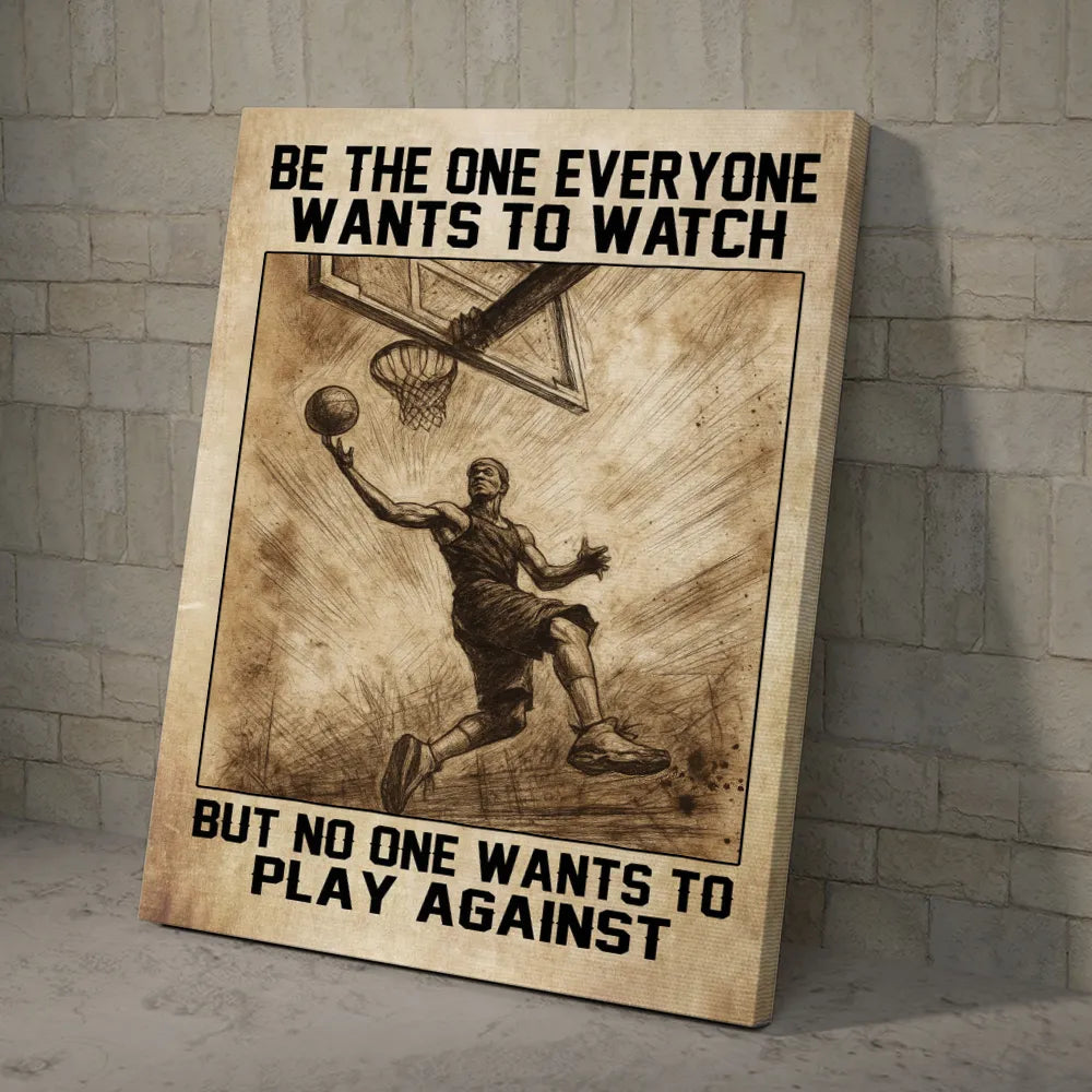 🏀 Featuring the bold quote “Be the one everyone wants to watch but no one wants to play against”, this canvas captures the true spirit of the game – skill, passion, and determination.