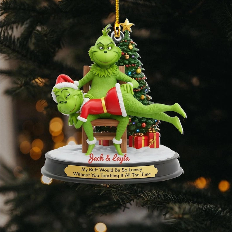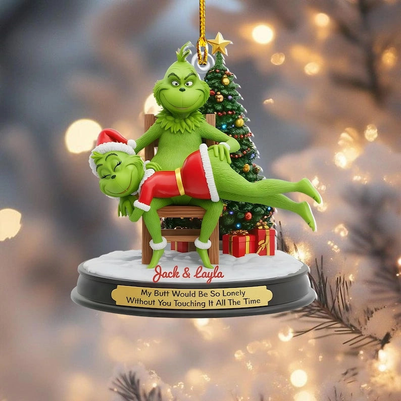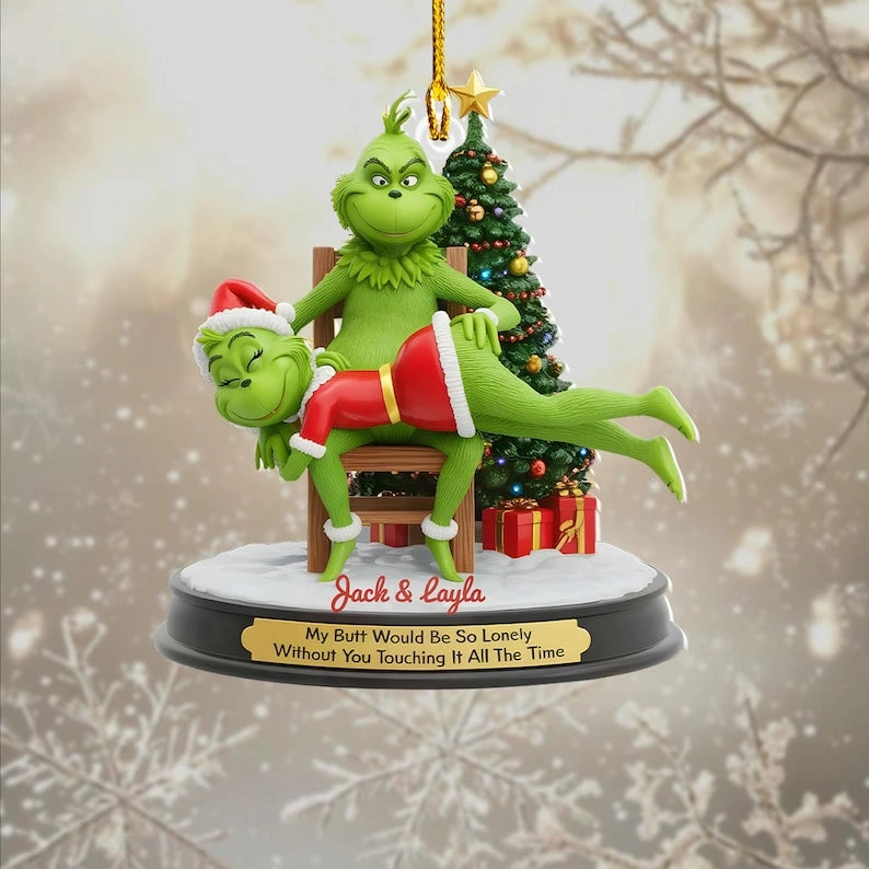Custom Couple Green Monster Acrylic Ornament - Funny Green Monster Holiday Decor