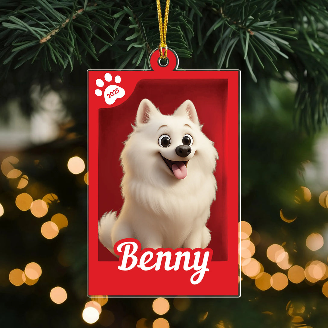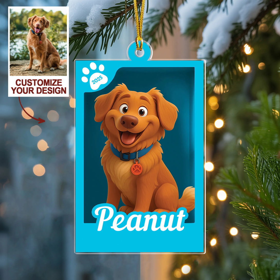 Custom Dog Cartoon Acrylic Ornament – Personalized Pet Photo Christmas Tree Decoration