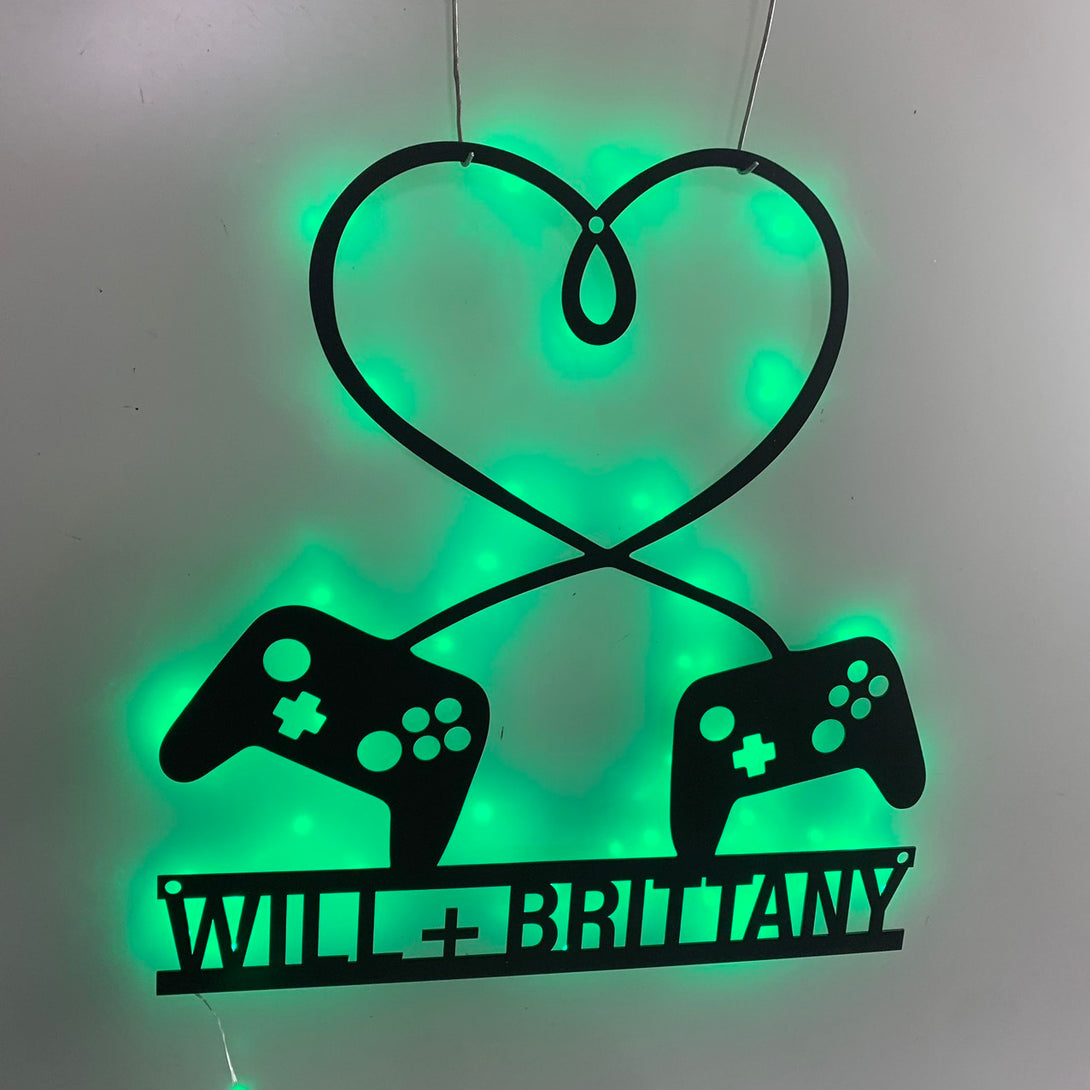 Custom Game Controller Metal Wall Art With Led Light, Personalized Couple Gamer Name Metal Sign, Game Zone Kids Room Metal Wall Led Decor