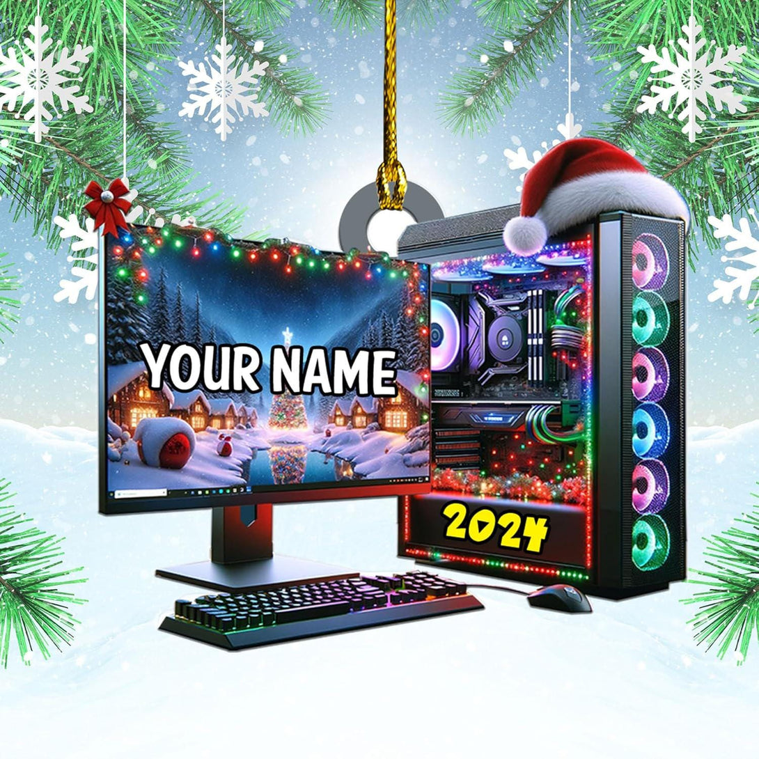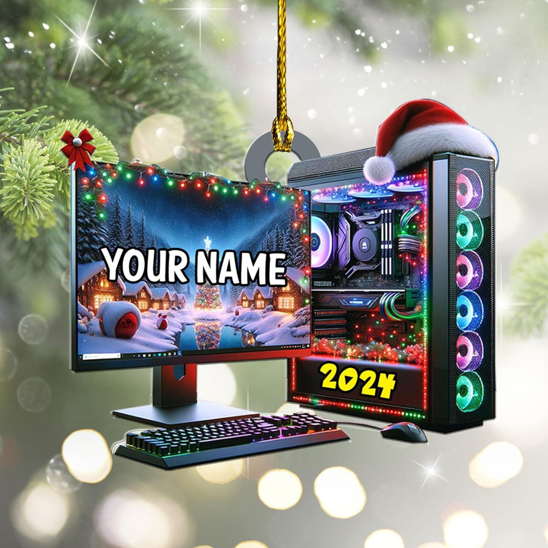 Custom Gaming Computer Ornament, Personalized Pc Xmas Tree Gift, Gamer Keepsake & Computer Lover Decoration