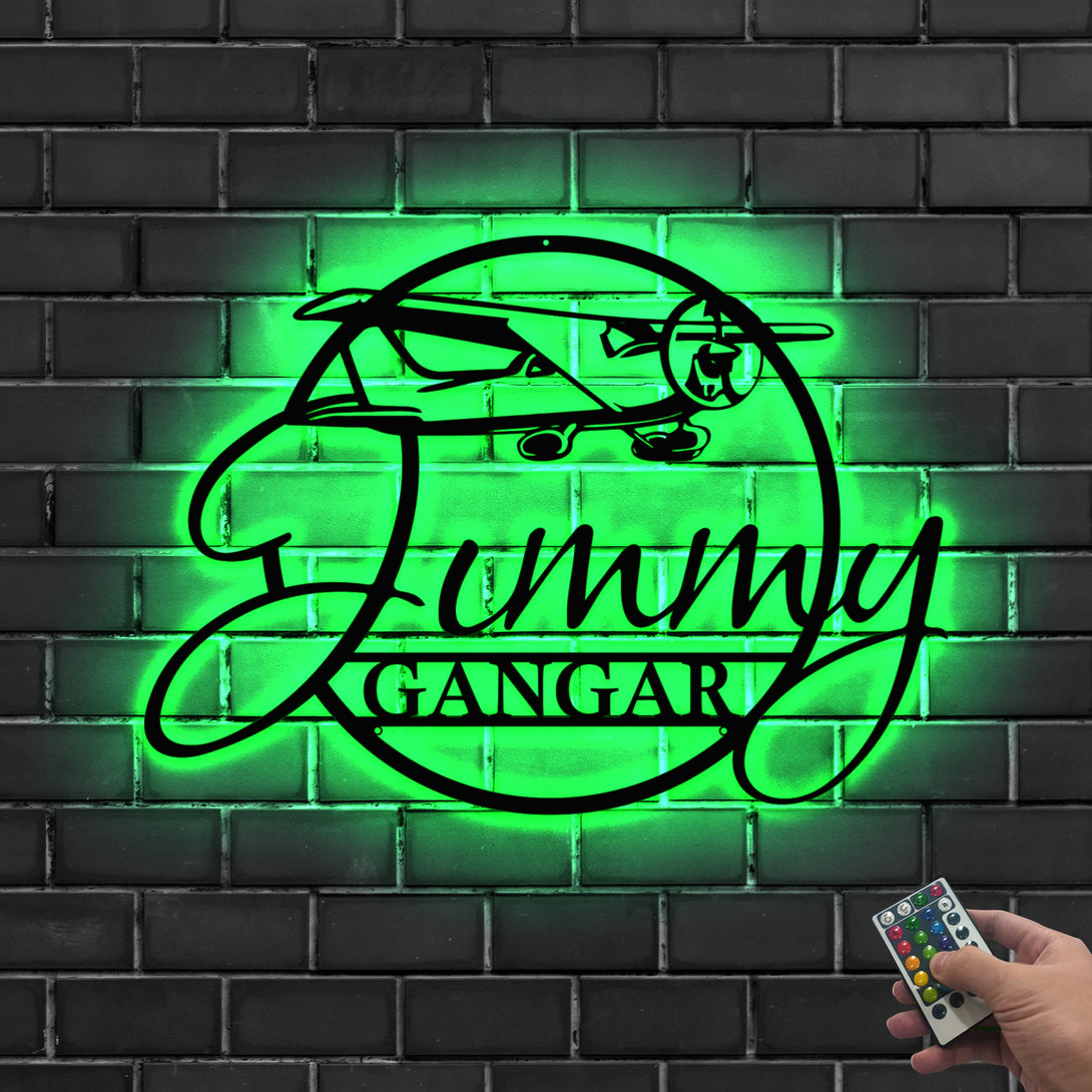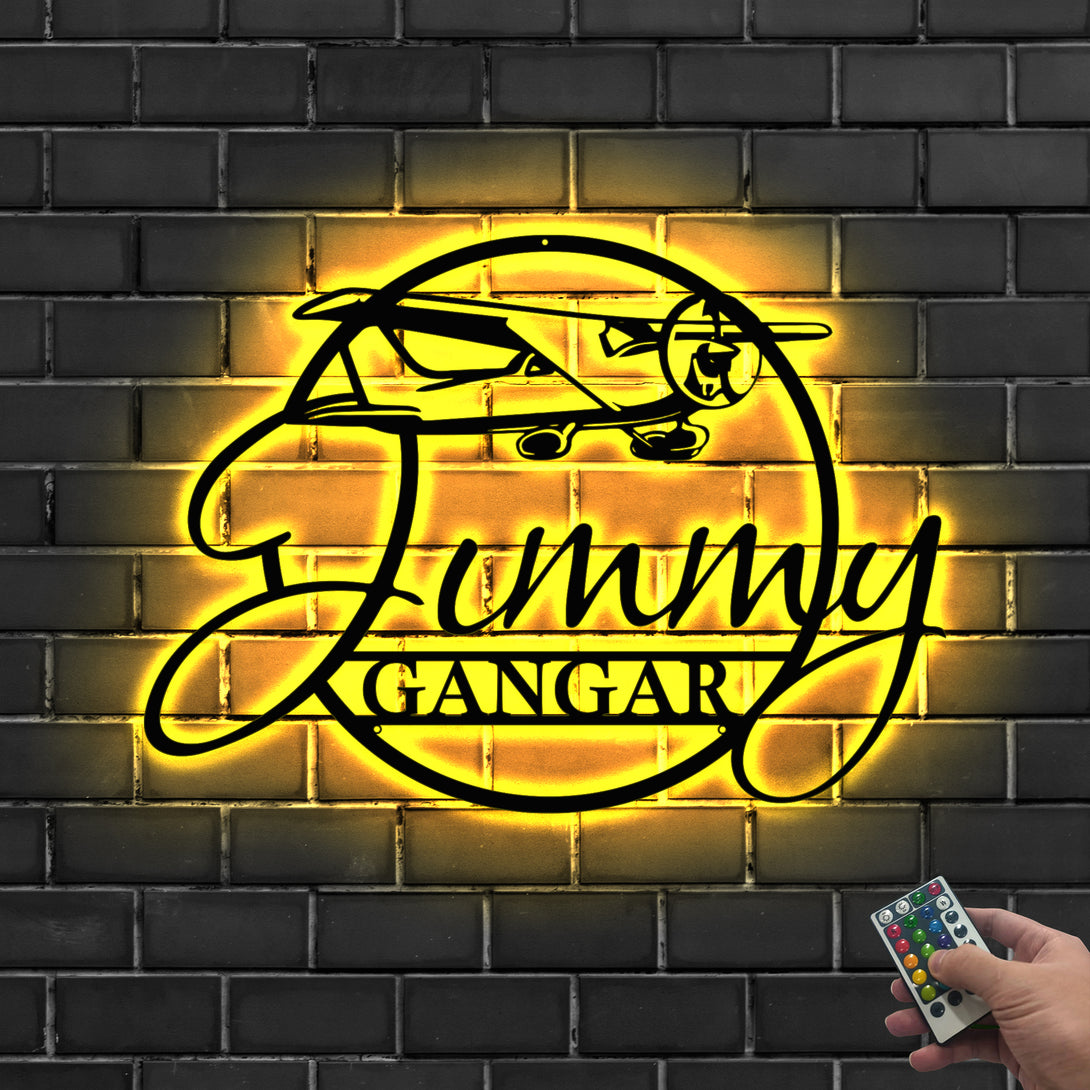 Custom Name Pilot Airplane Metal Sign Led Lights, Personalized Aircraft Hangar Metal Wall Art, Custom Pilot Name Sign, Metal Airforce Sign