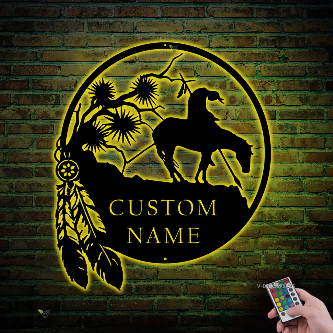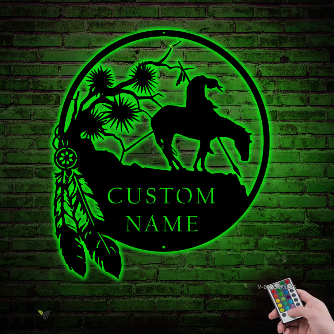 Custom Native American With Horse Metal Sign Led Lights, Indian Warrior Metal Wall Art, Native American End Of The Trail Metal Sign Home Decor