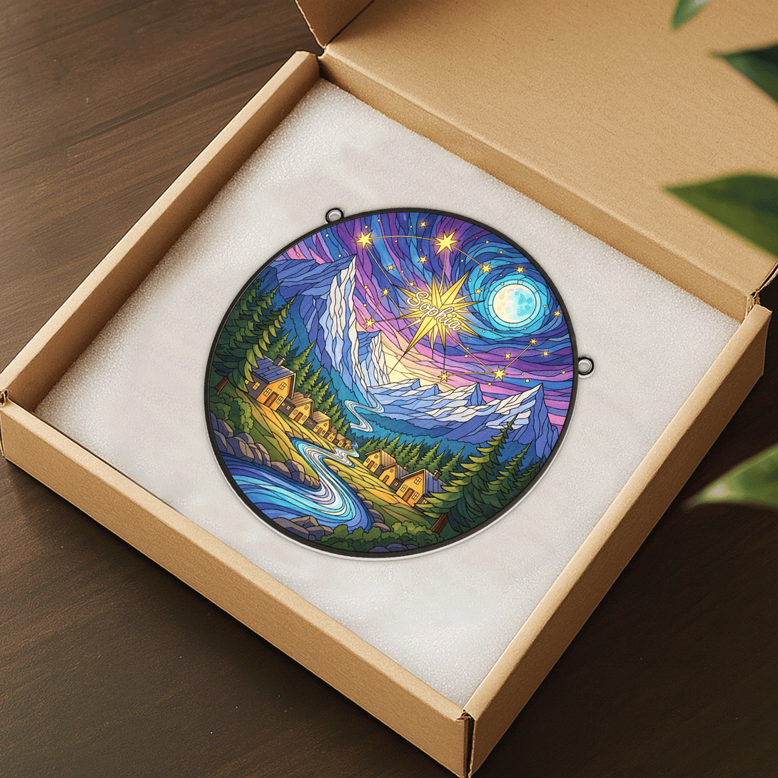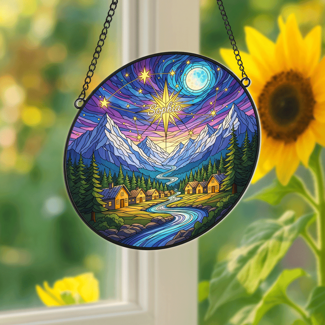 Bring a touch of magic to your space with this personalized suncatcher, beautifully crafted to reflect and scatter sunlight into a spectrum of colors. When hung by your window, bookshelf, or cozy reading nook, it creates a dreamy glow that fills your room with warmth and charm.