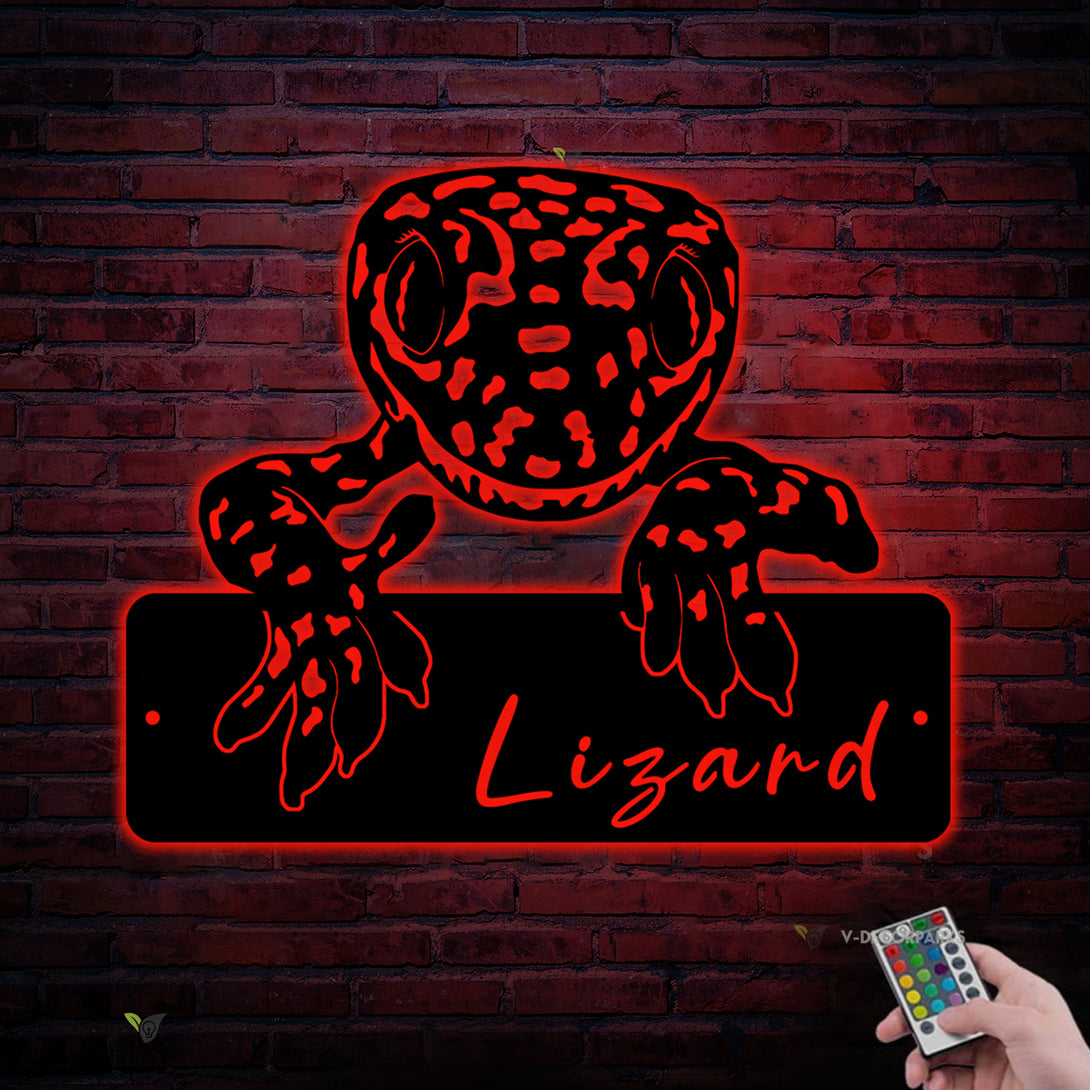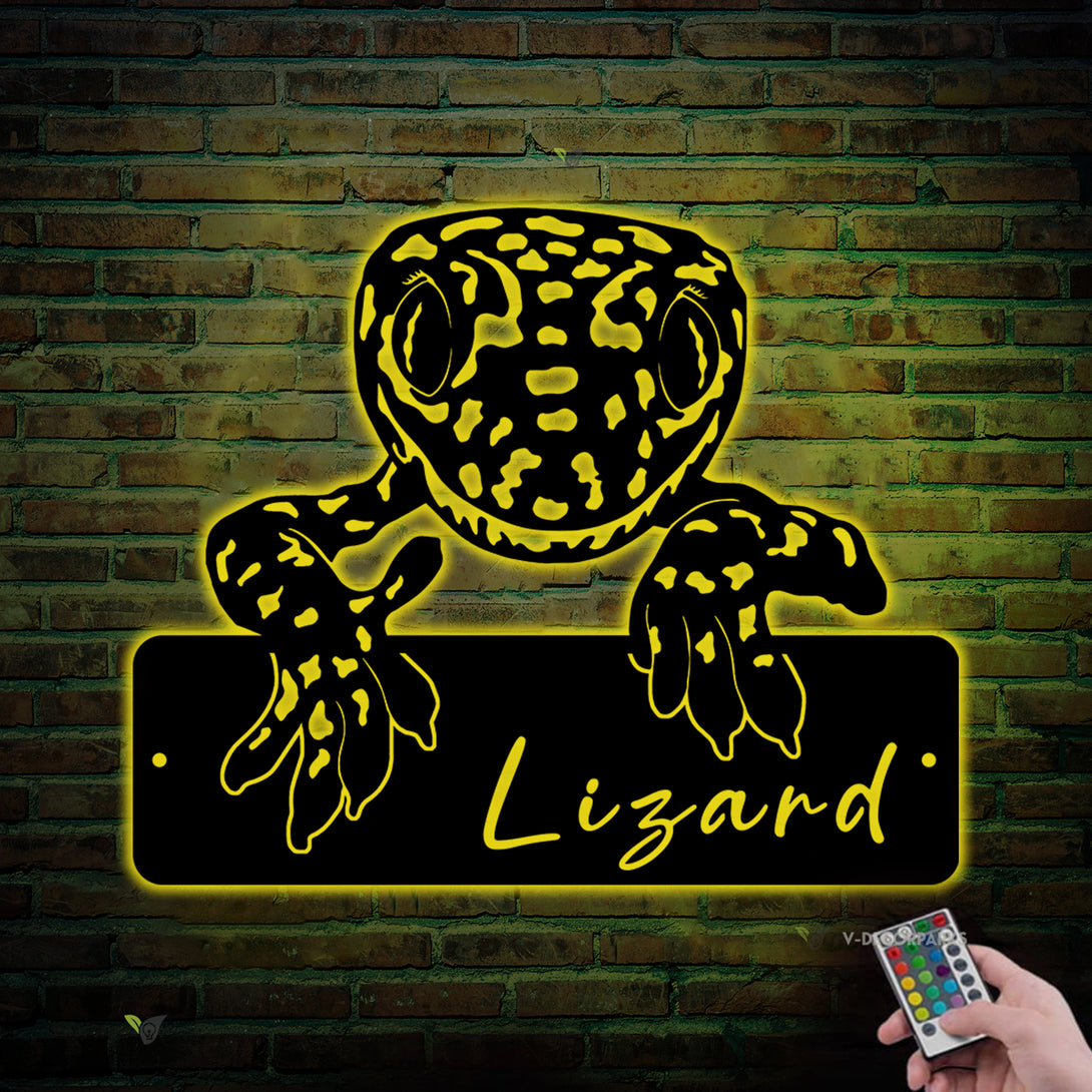 Custom Peeking Lizard Metal Sign With Led Lights, Personalized Name Lizard Animal Metal Wall Art, Lizard Animal Neon Metal Wall Hanging Decor
