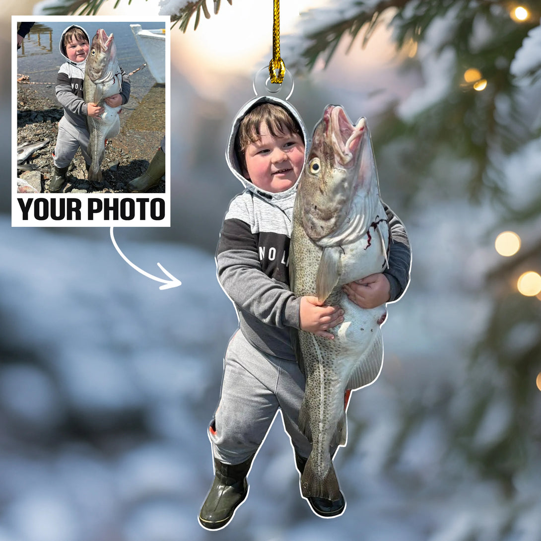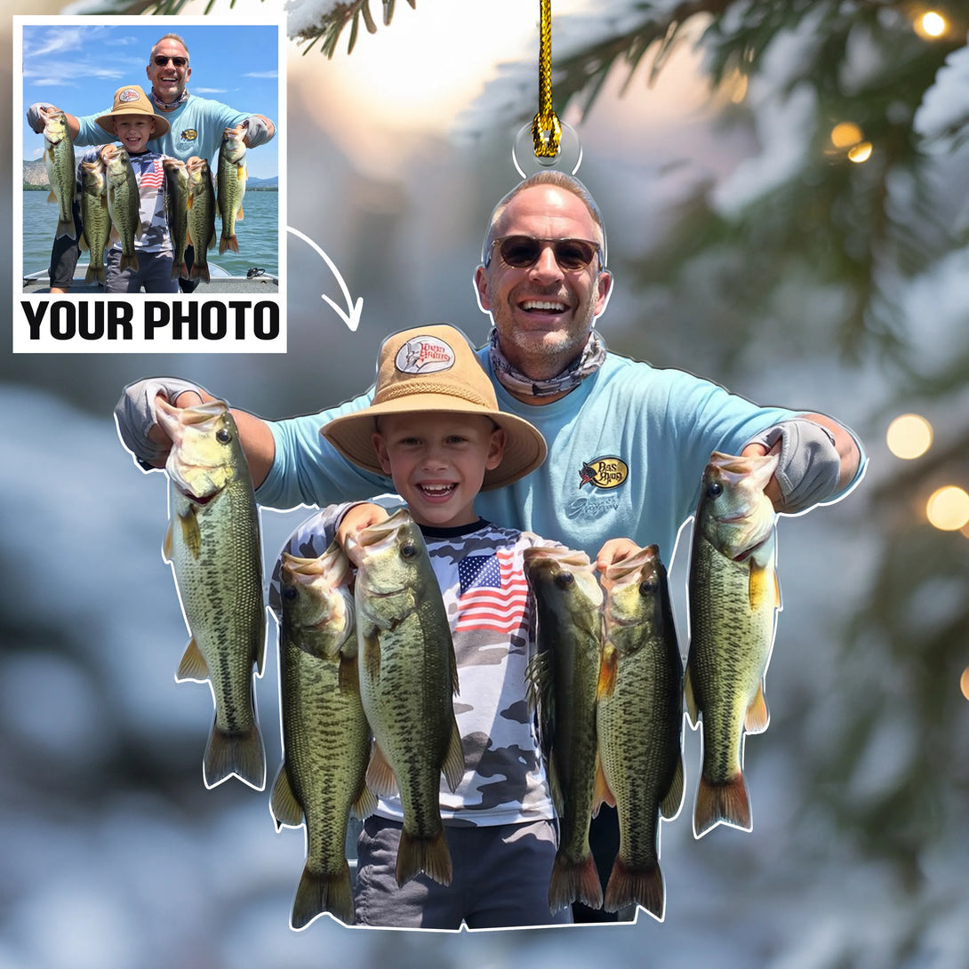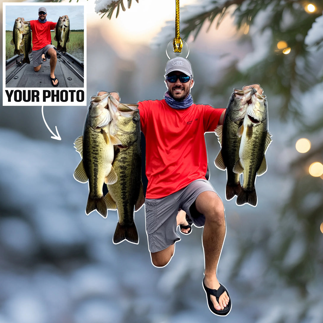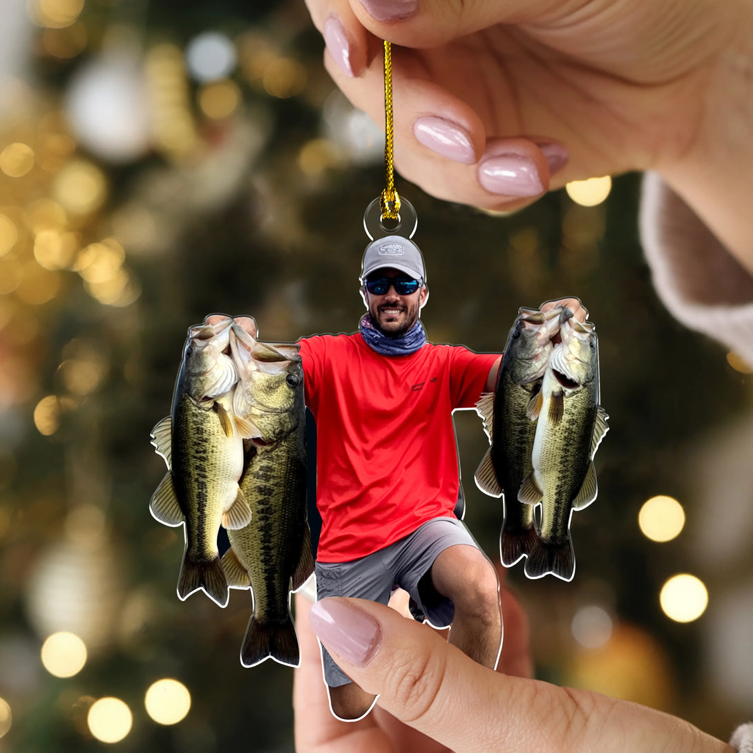 Custom Photo Fishing Acrylic Ornament – Personalized Fisherman Christmas Tree Decoration