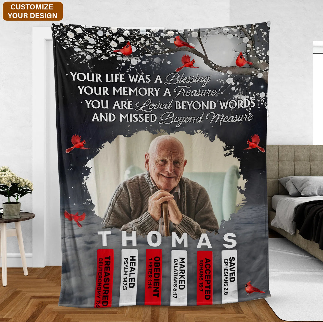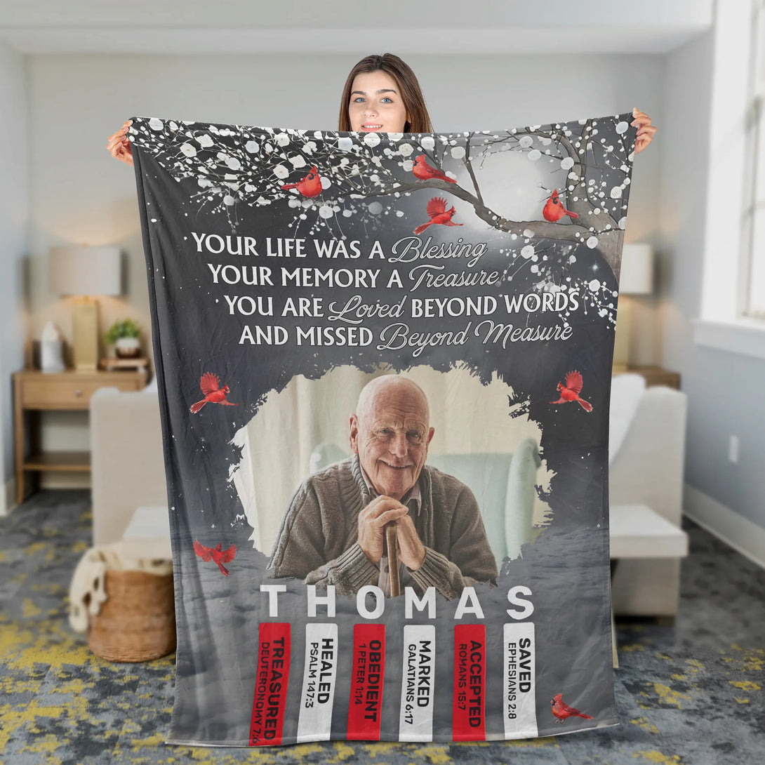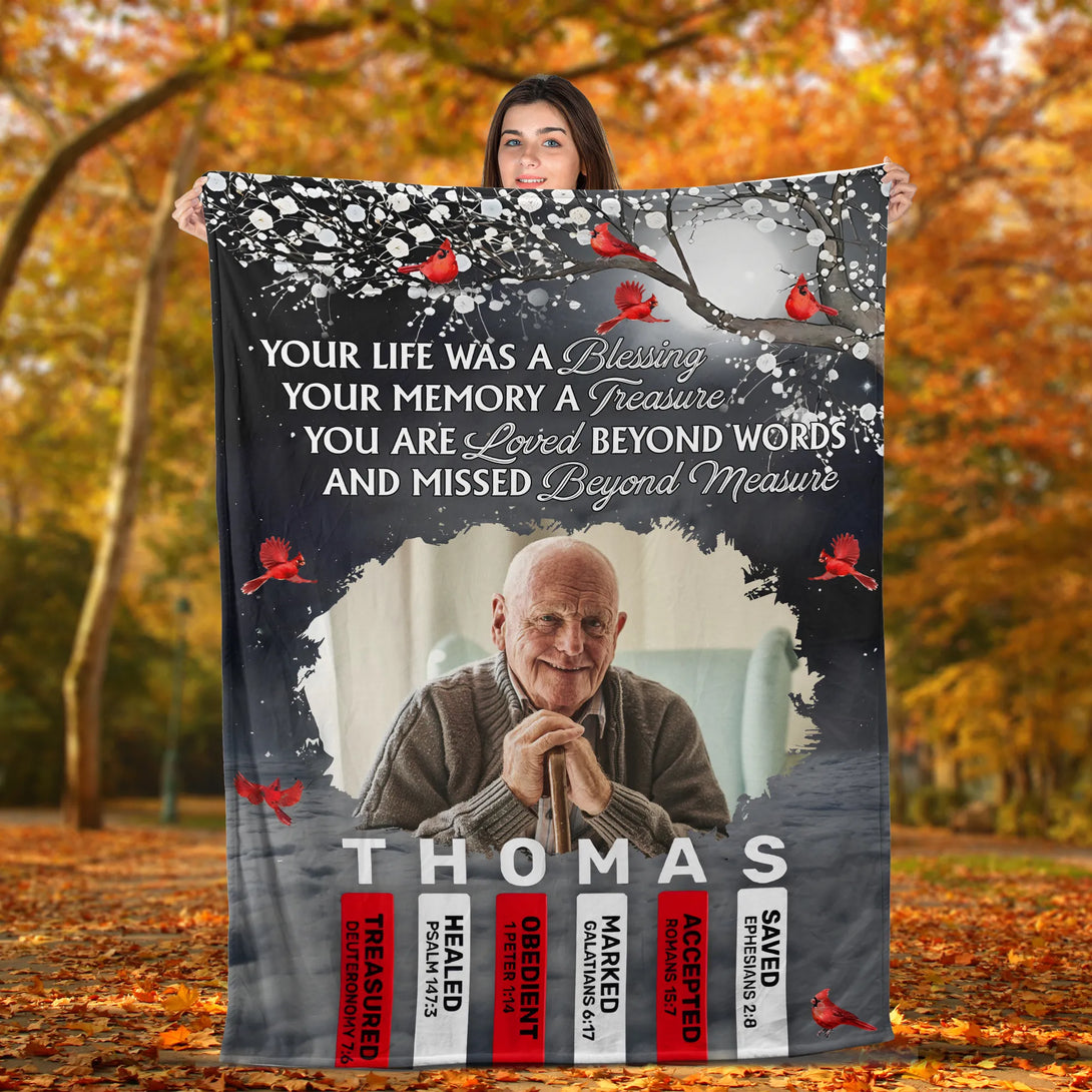 Custom Photo Your Life Was A Blessing Your Memory Was A Treasure Memorial Blanket