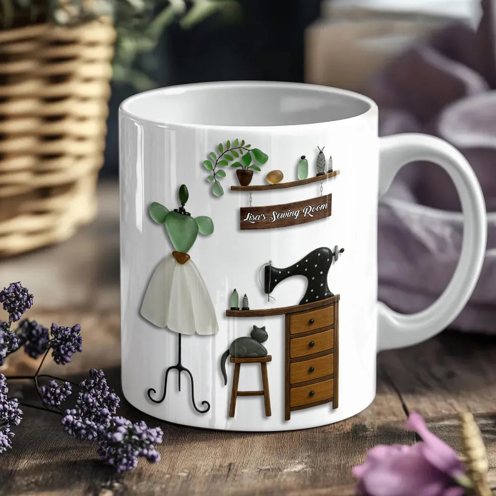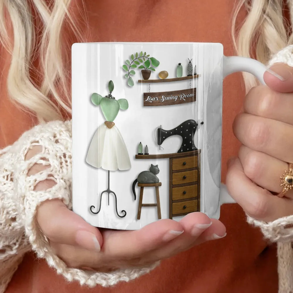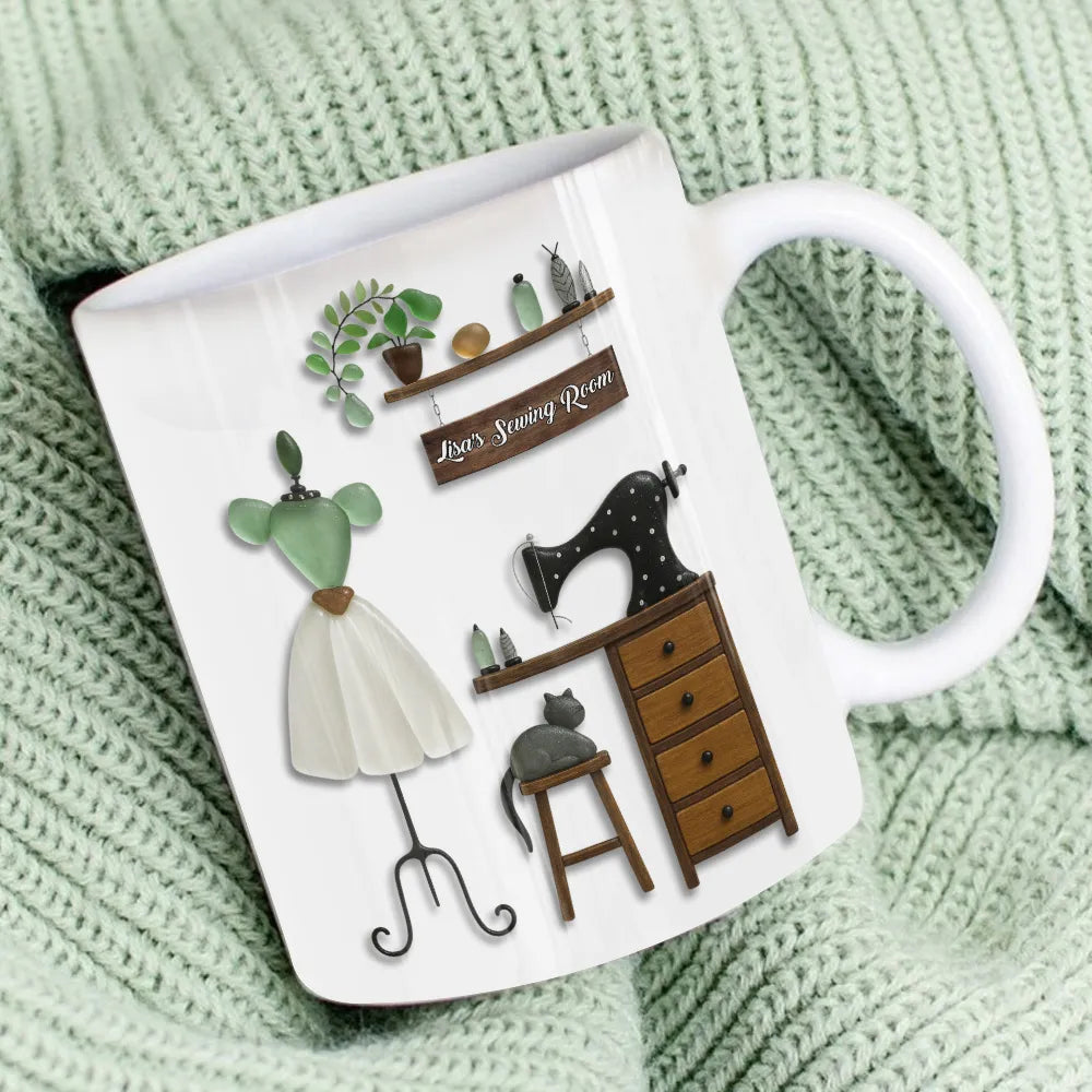 Custom Sewing Room Sea Glass Mug – Personalized Ceramic Cup for Sewing Lovers