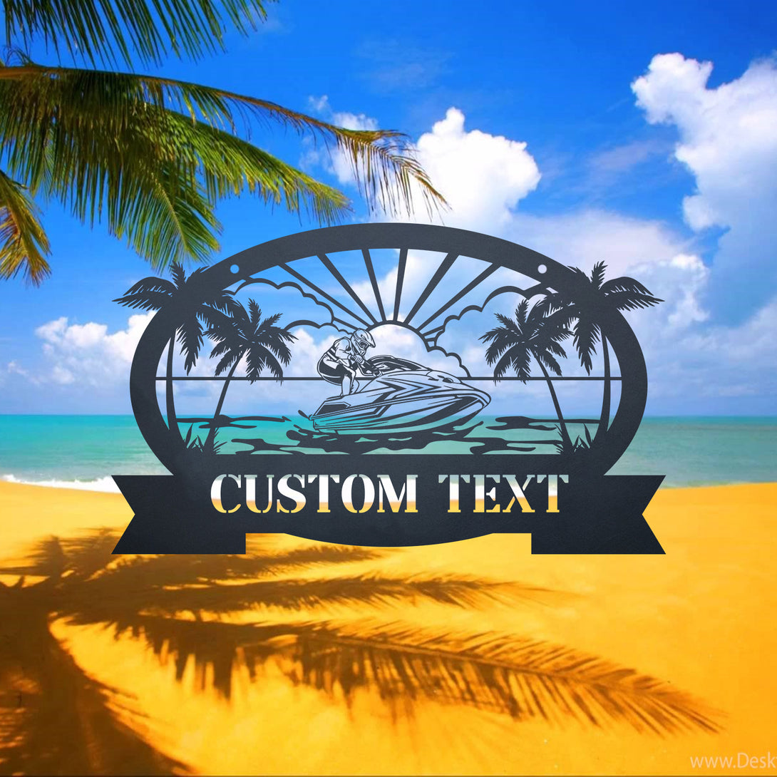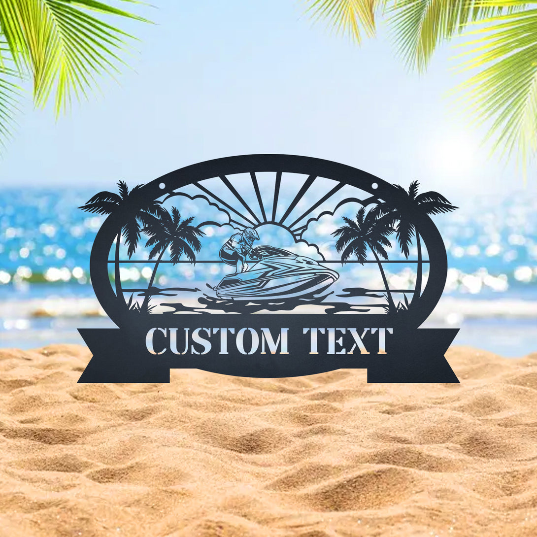 Custom Water Jet Ski Monogram Metal Sign Led Lights, Personalized Jet Ski Beach House Metal Wall Art, Watercraft Jet Skiing Sign Beach House Decor
