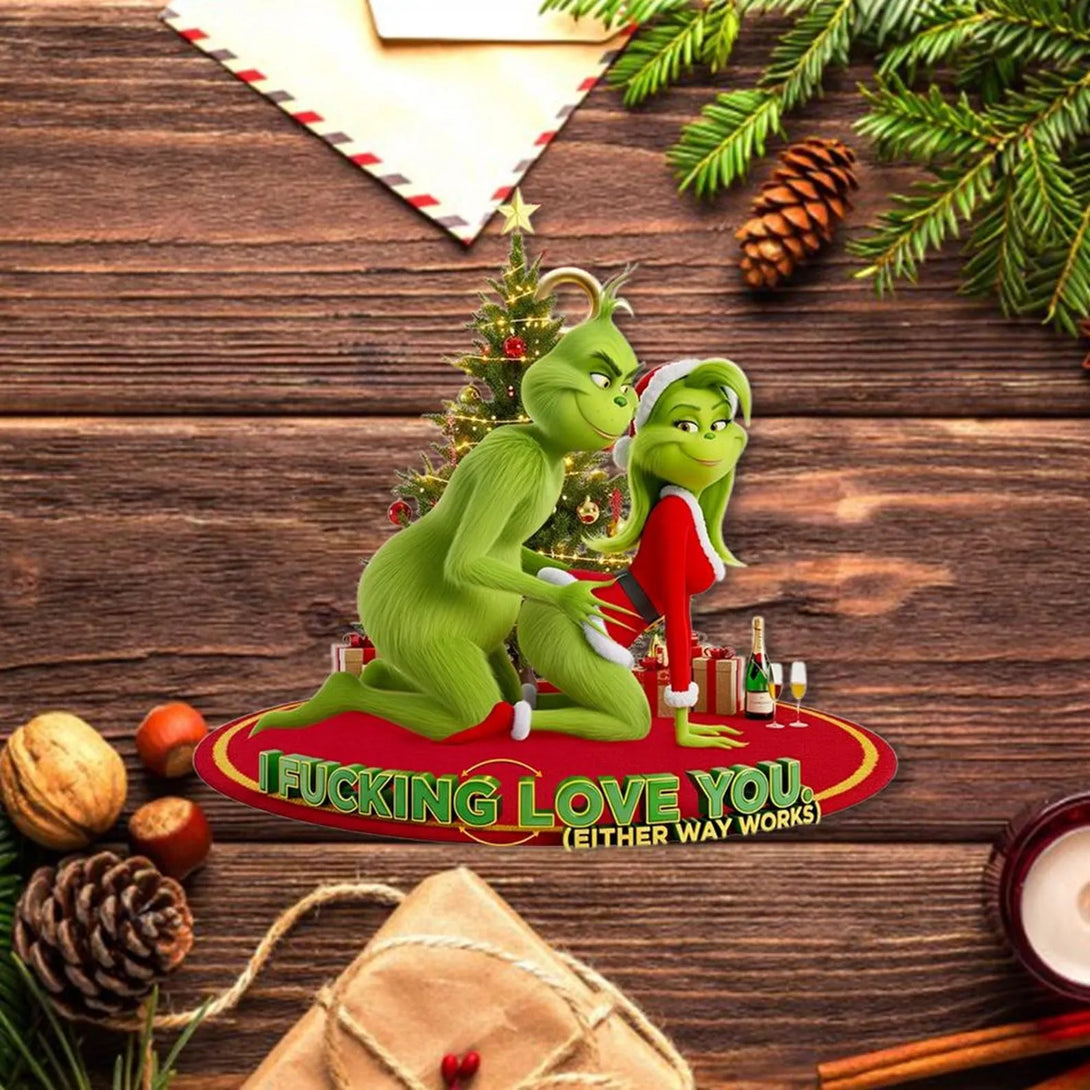 Add a cheeky twist to your holiday décor with this Funny Grinch Couple Ornament. Perfect for those who enjoy a little humor (and naughtiness) during the festive season, this ornament makes a hilarious conversation starter. Crafted from durable material with vivid printing, it’s ideal as a gag gift for friends, couples, or anyone who loves holiday laughs.
