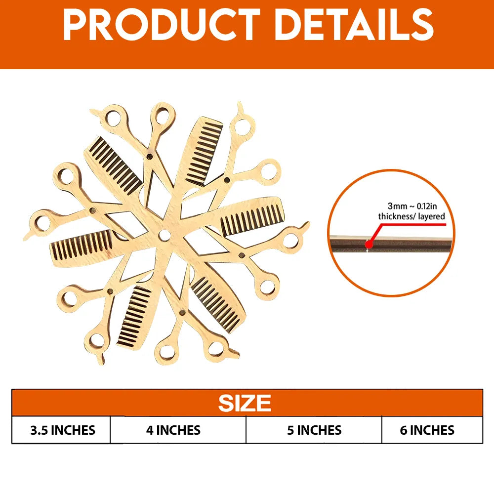 Bring a touch of creativity and salon charm to your holiday décor with our Hair Stylist Snowflake Wood Ornament — a one-of-a-kind piece designed especially for hair professionals who love what they do.