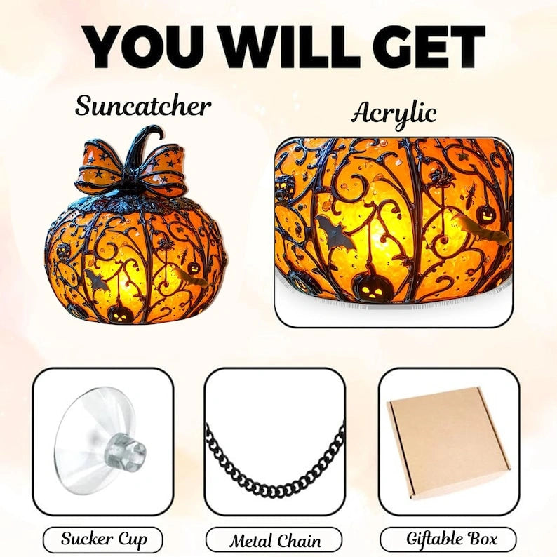 Bring a touch of spooky charm to your home with this Halloween Pumpkin Lantern Acrylic Suncatcher. Crafted from high-quality acrylic, this lantern features a glowing pumpkin design adorned with intricate bats and stars, making it a perfect centerpiece for your Halloween décor.