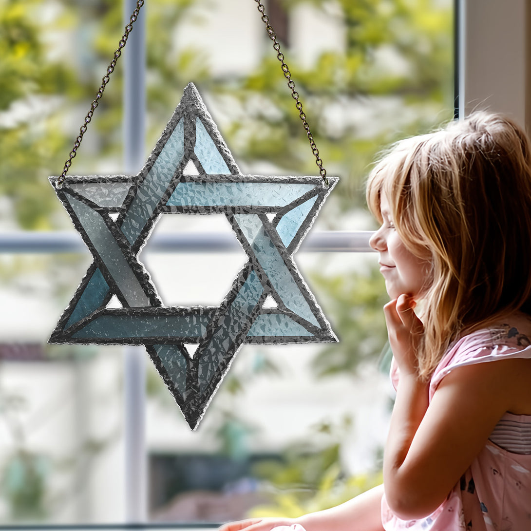 Hanukkah Star Of David Suncatcher For Window Hanging, Personalized Hanukkah Ornament, Wavy Hologram Window Decor, Jewish Holiday Gift