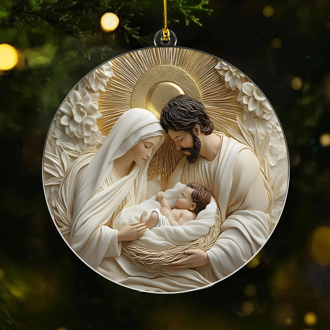 Crafted from premium-quality acrylic, the ornament features a realistic 3D visual effect that creates depth and dimension, making the Holy Family scene appear almost lifelike under the Christmas lights. Perfect for your tree, mantle, or as a thoughtful gift, it’s a touching way to keep Christ at the heart of your Christmas celebration.