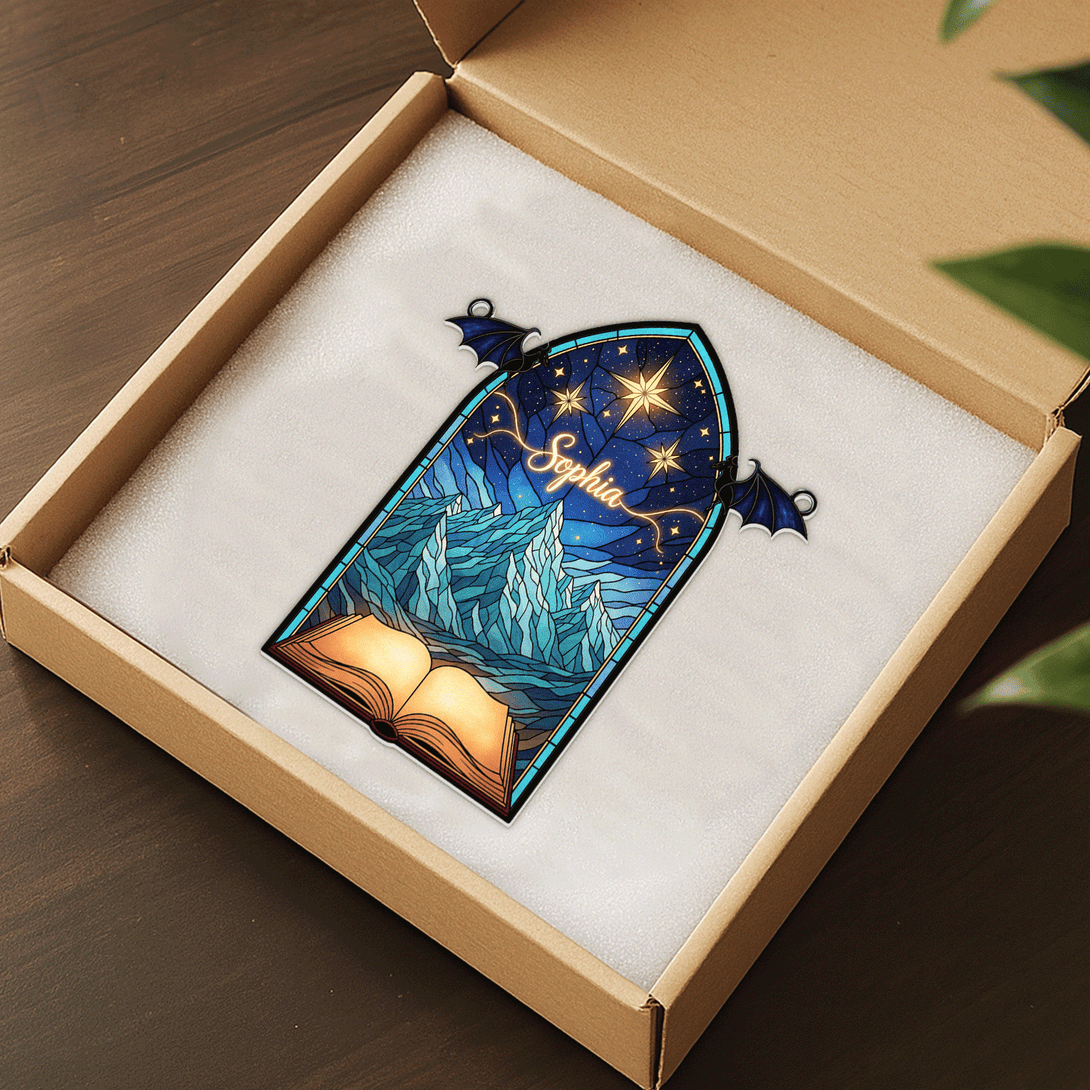 Each piece is custom-made with intricate detailing, making it not only a lovely decor item but also a meaningful gift for someone special. Whether you're a fantasy lover, bookworm, or celestial dreamer, this suncatcher captures the light and imagination of every soul who adores a little sparkle.