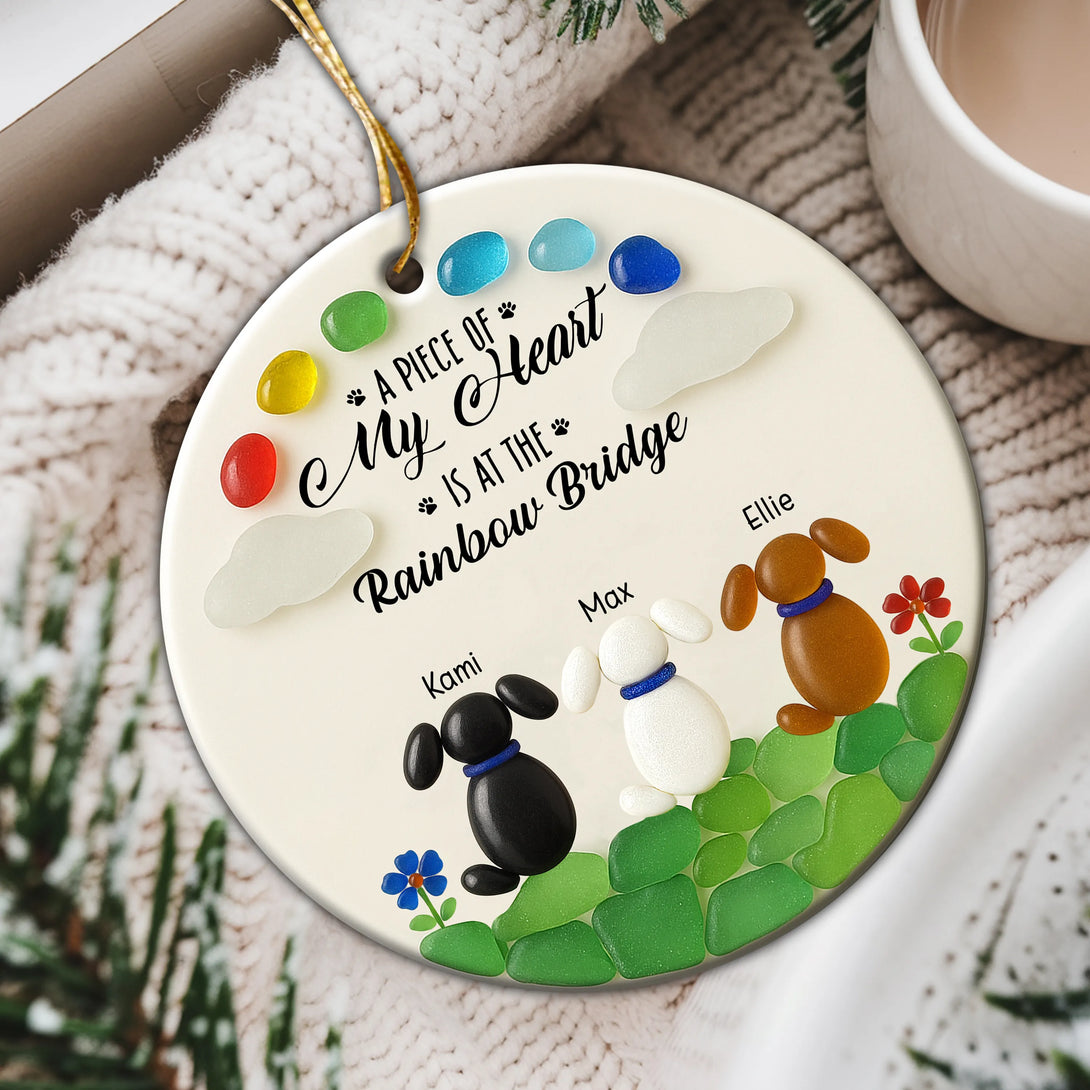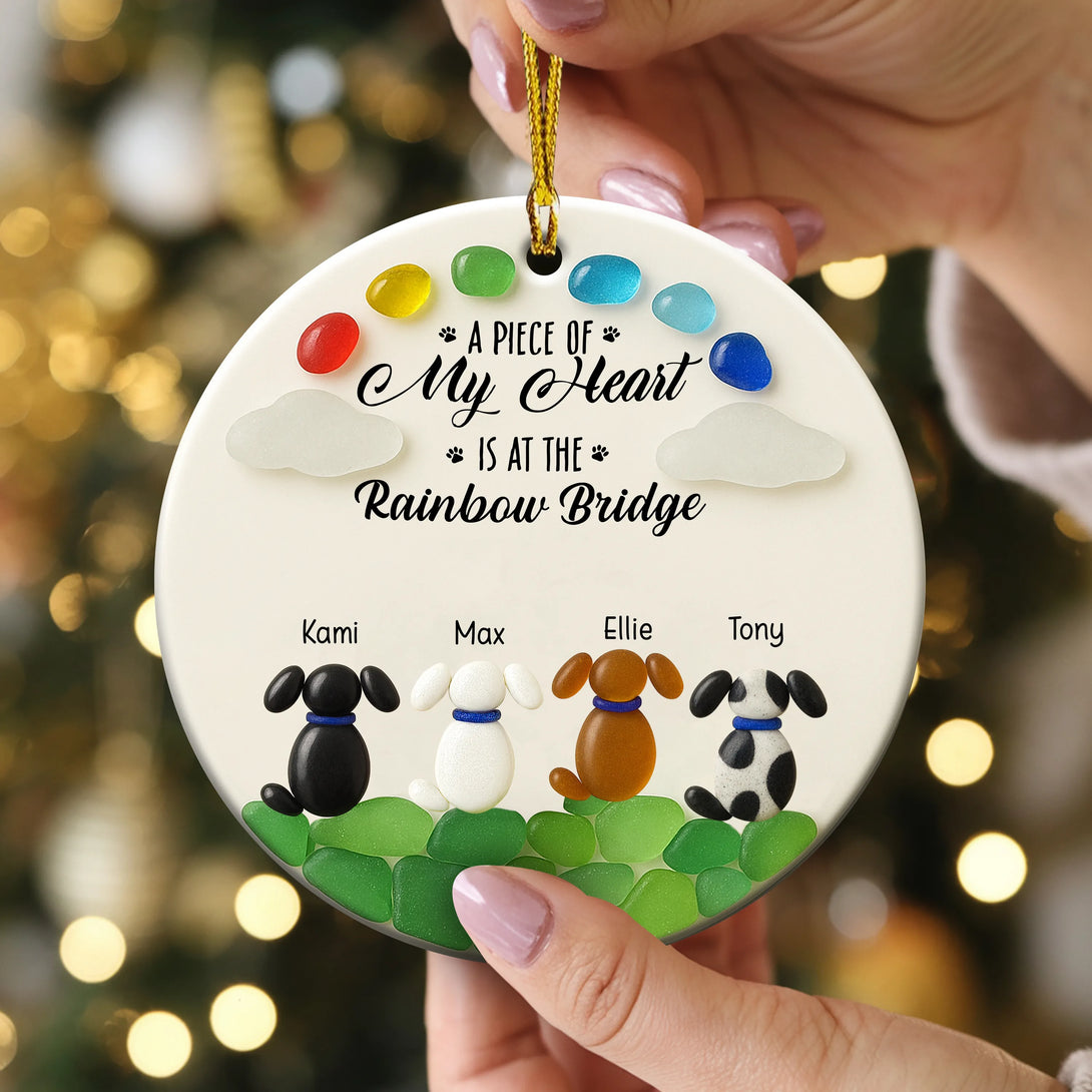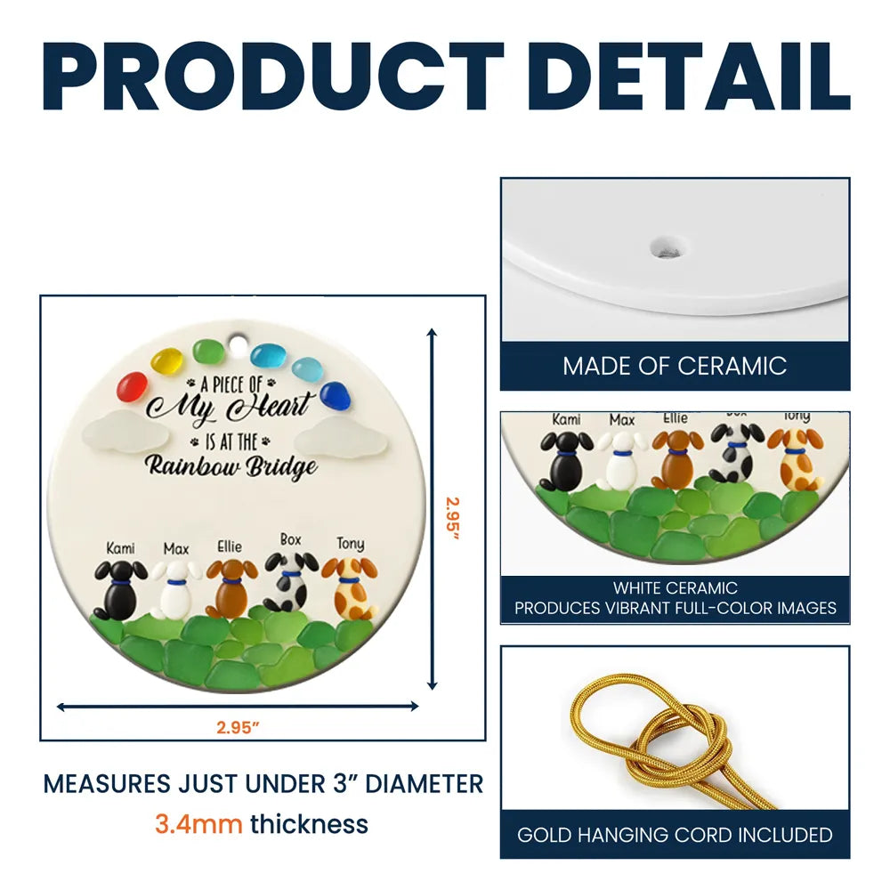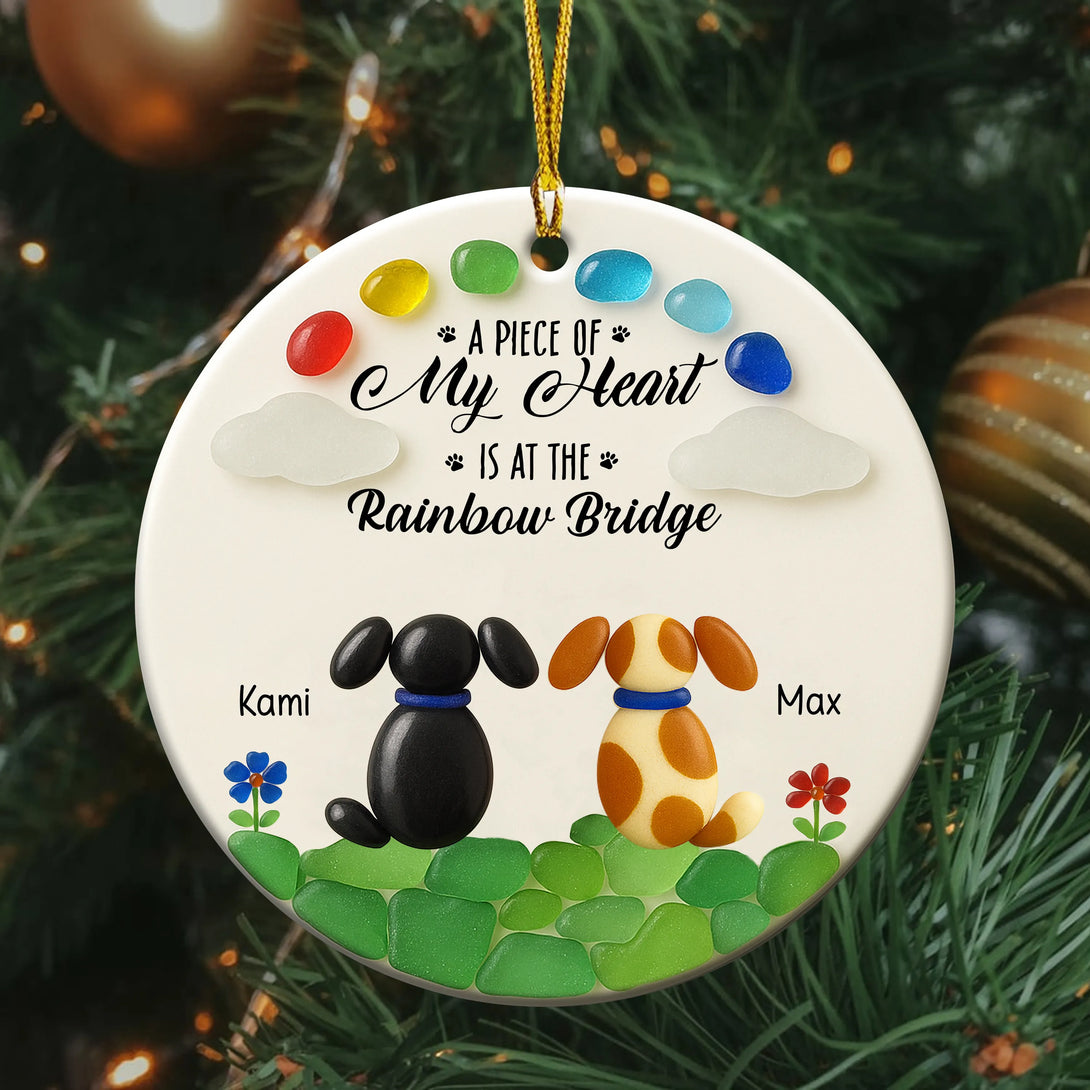 Personalized A Piece Of my Heart Is At Rainbow Bridge Memorial Dog Ceramic Ornament
