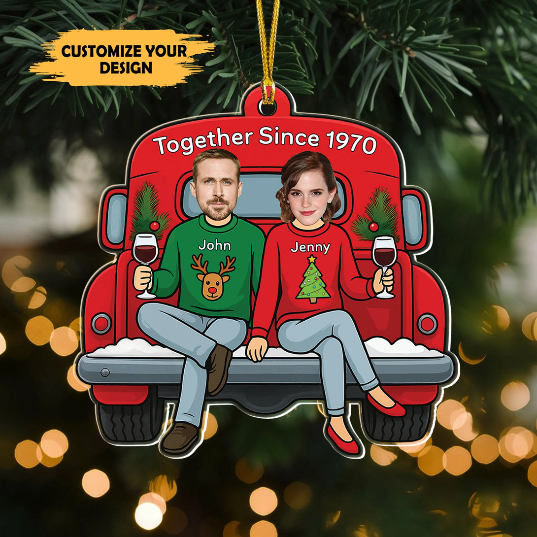 Celebrate love and togetherness with this Personalized Acrylic Photo Ornament. Featuring a charming design of a couple sitting together on a festive truck, this ornament can be fully customized with your photo, names, and special year. It’s a unique way to capture your journey and make holiday decorations even more meaningful.