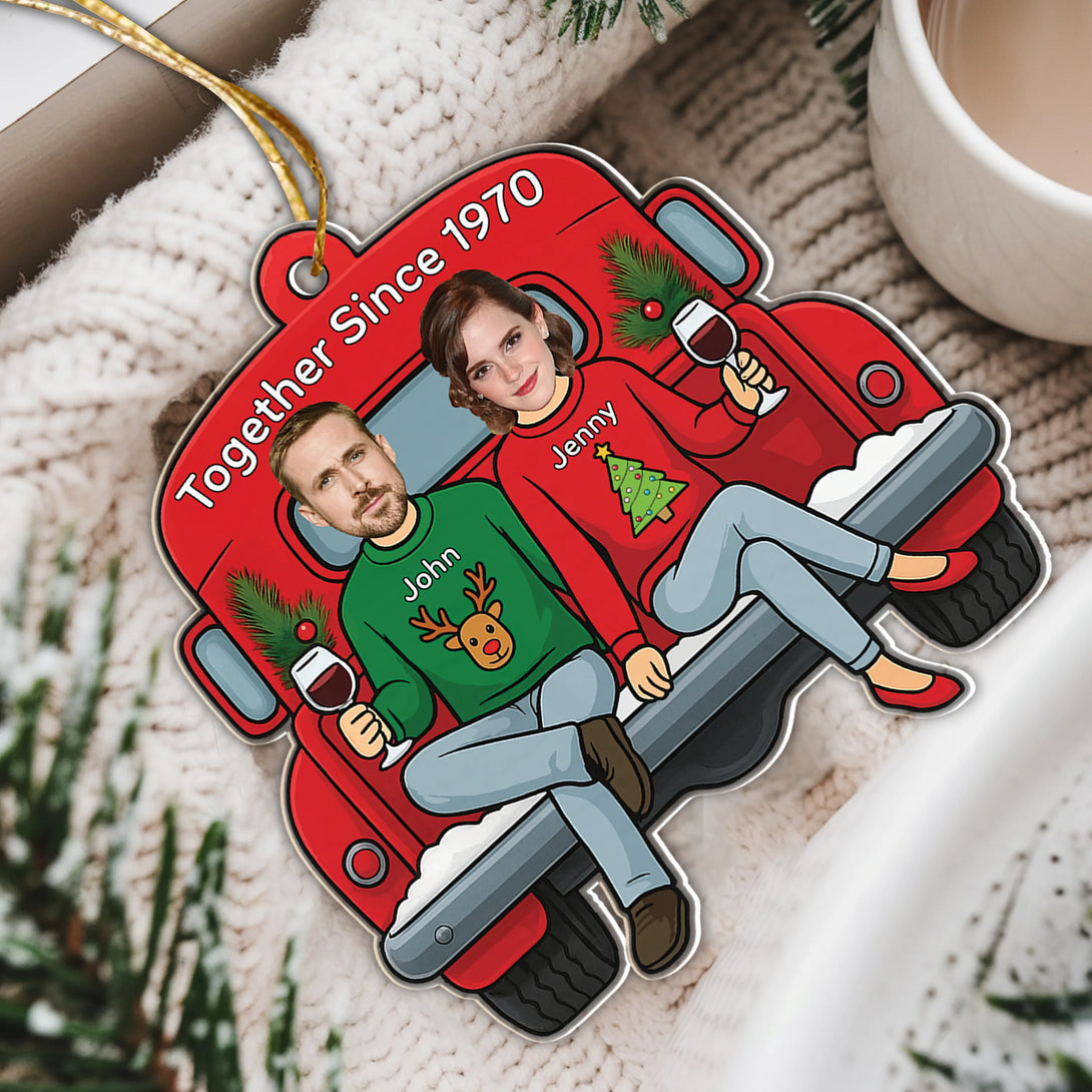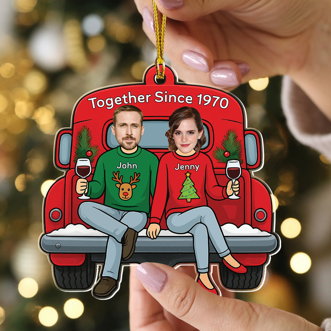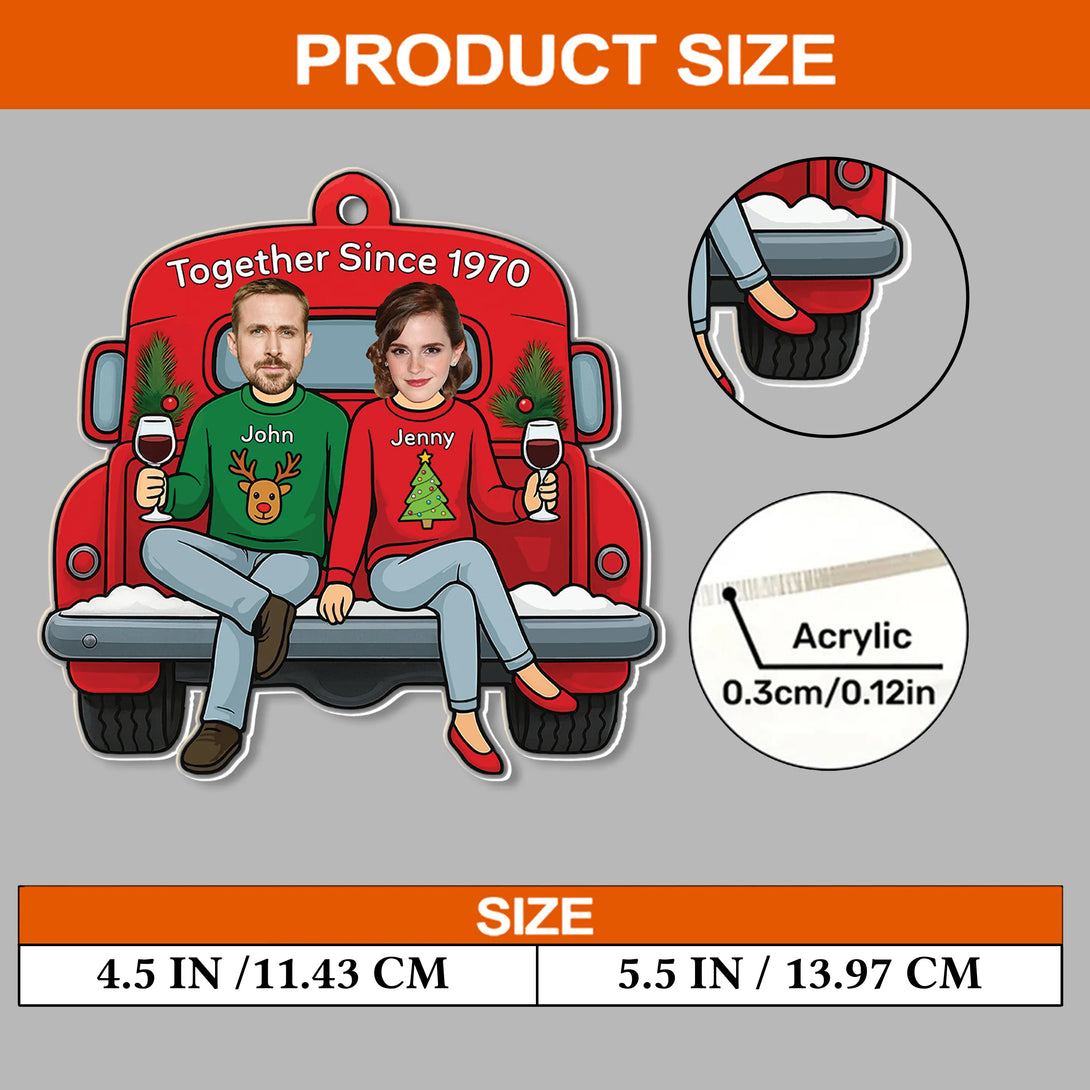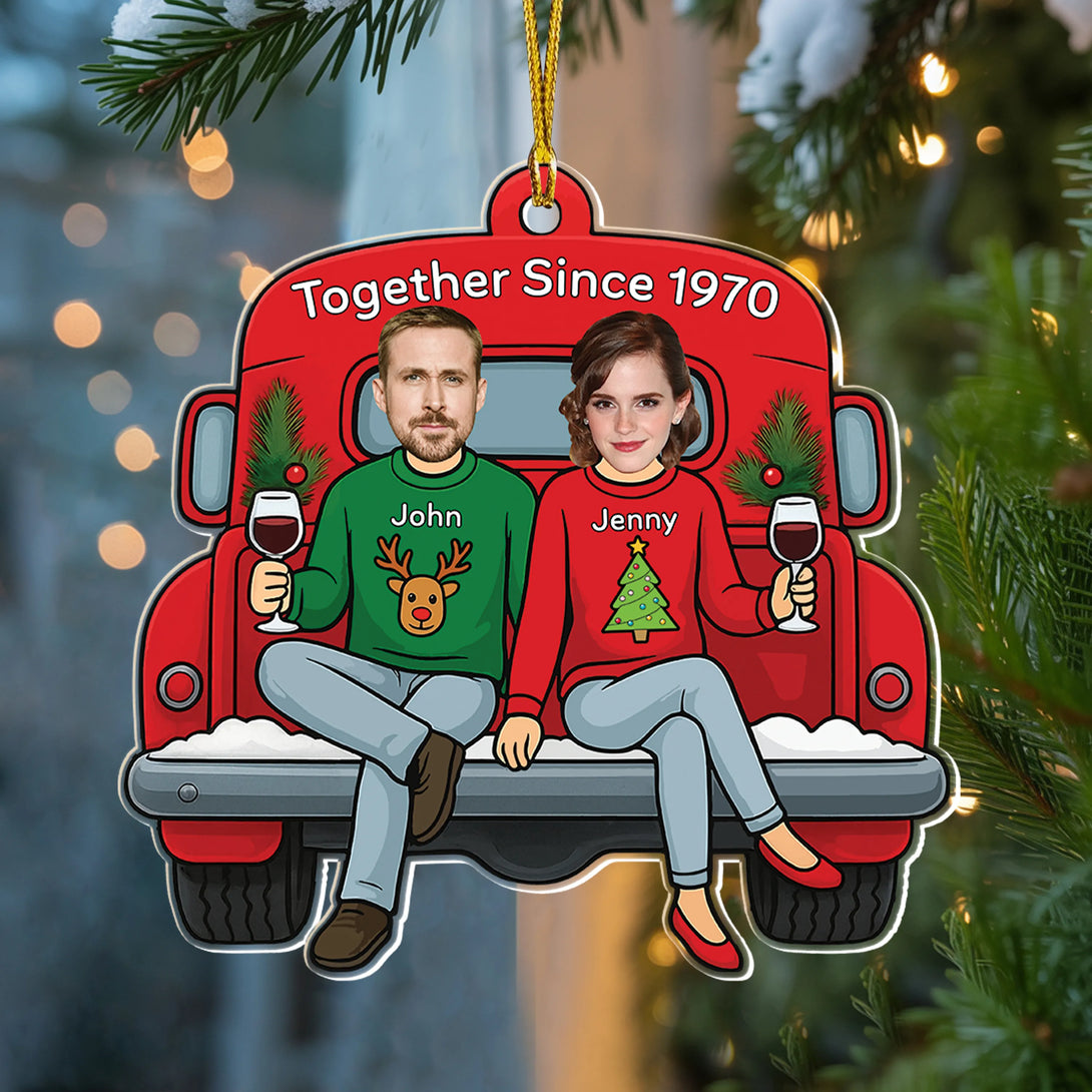 Personalized Acrylic Photo Ornament for Couples – Custom Face, Name & Year Christmas Decoration Gift