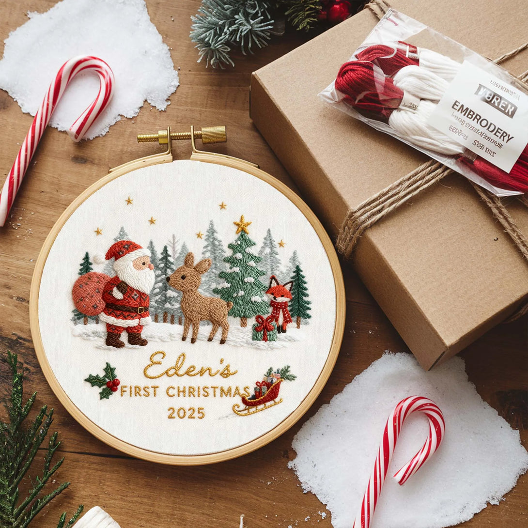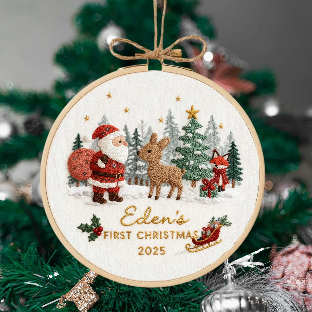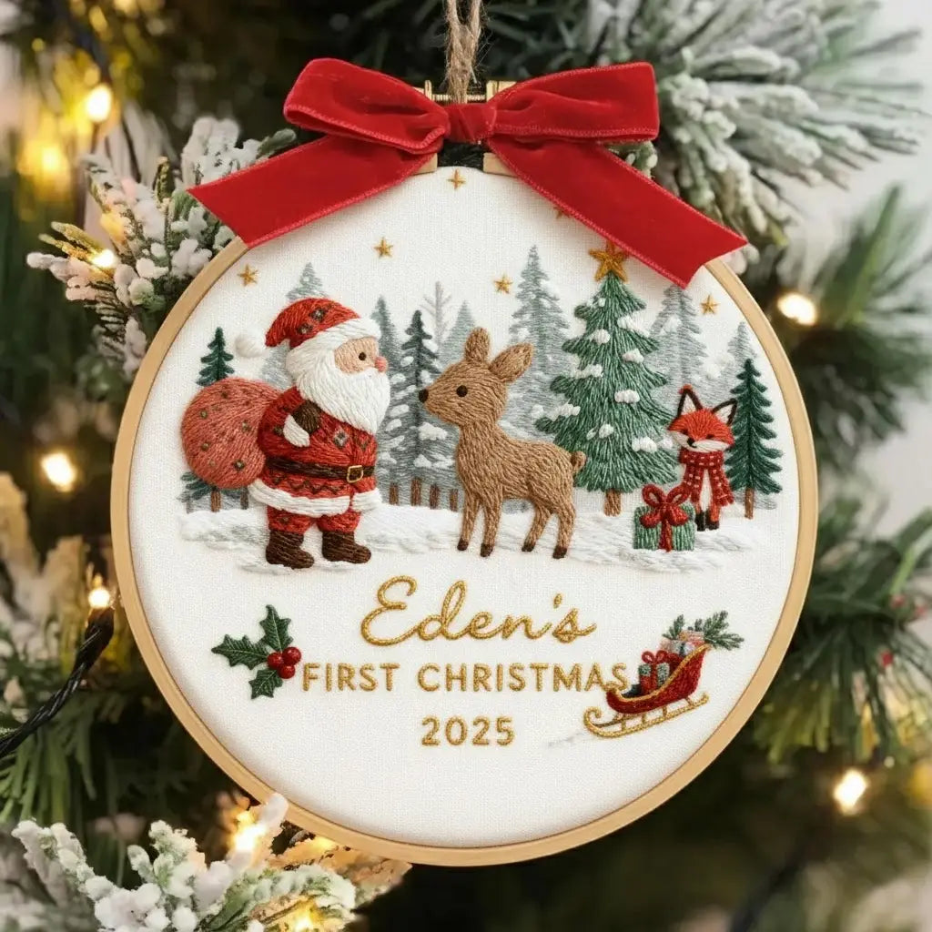 Personalized Baby’s First Christmas Embroidered Ornament 2025