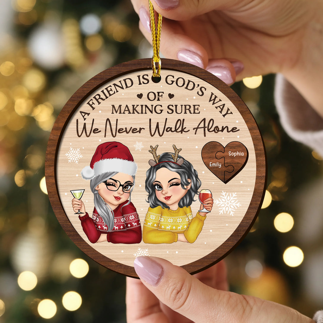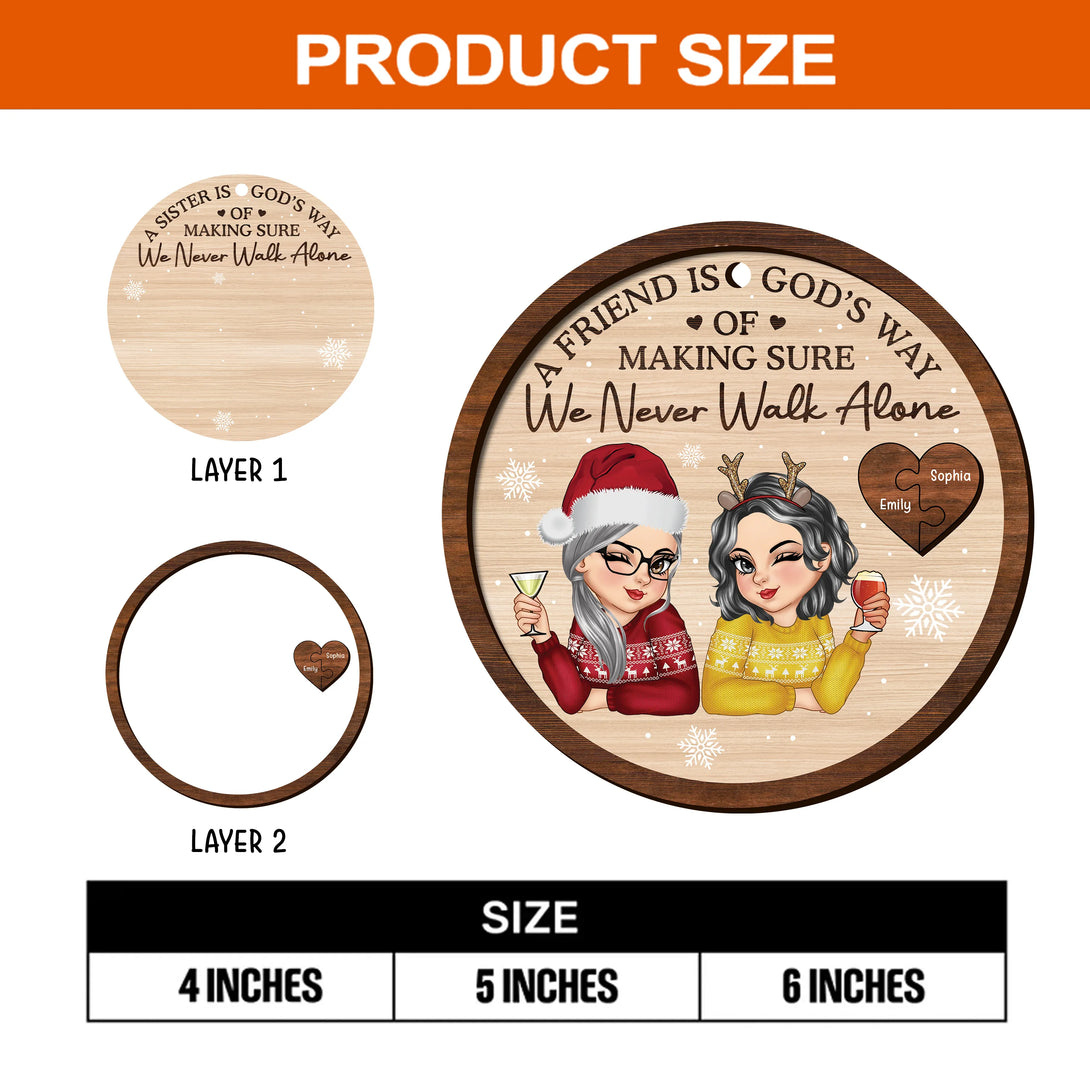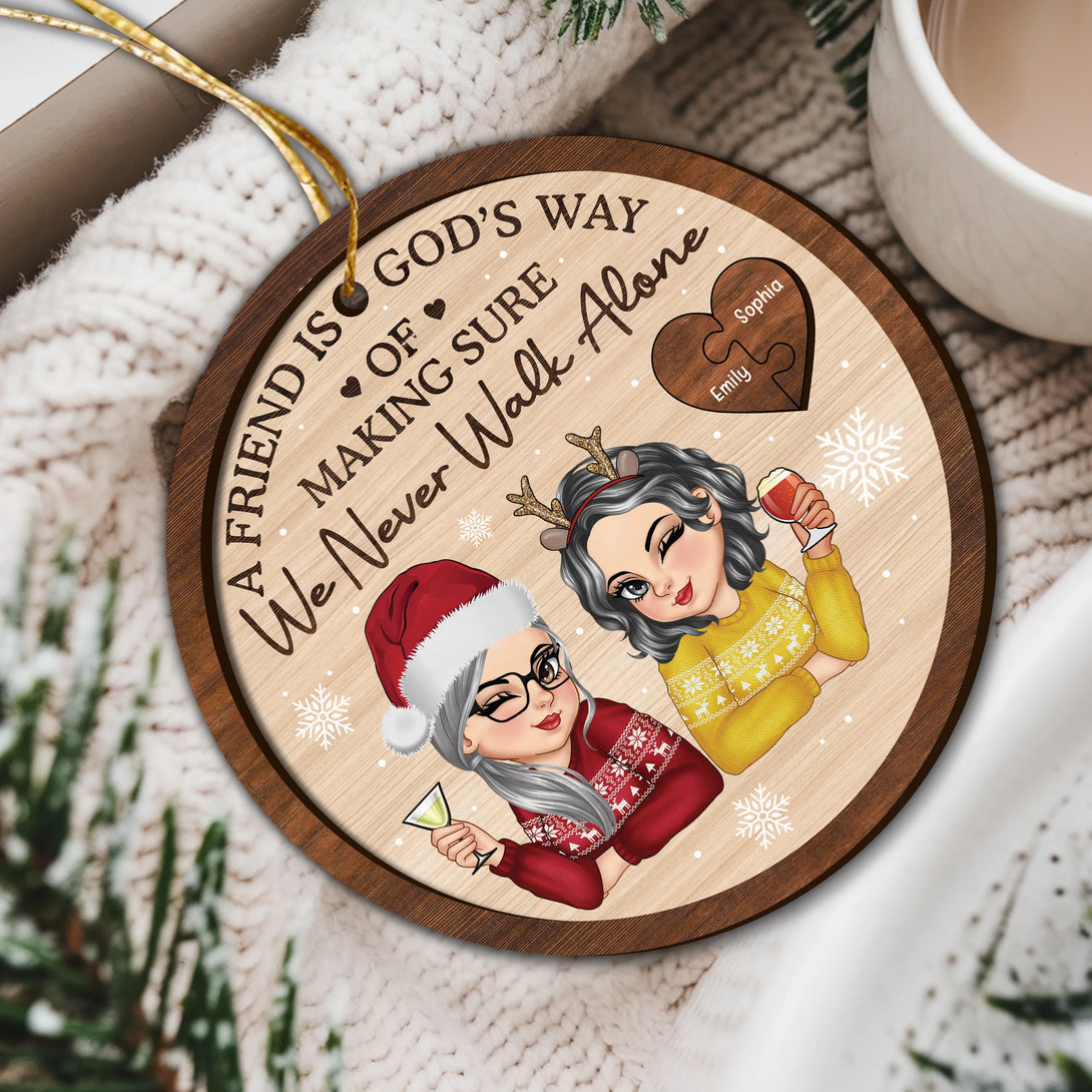 Personalized Best Friend Ornament – “A Friend is God’s Way of Making Sure We Never Walk Alone” 2 Layered Wood Christmas Decoration