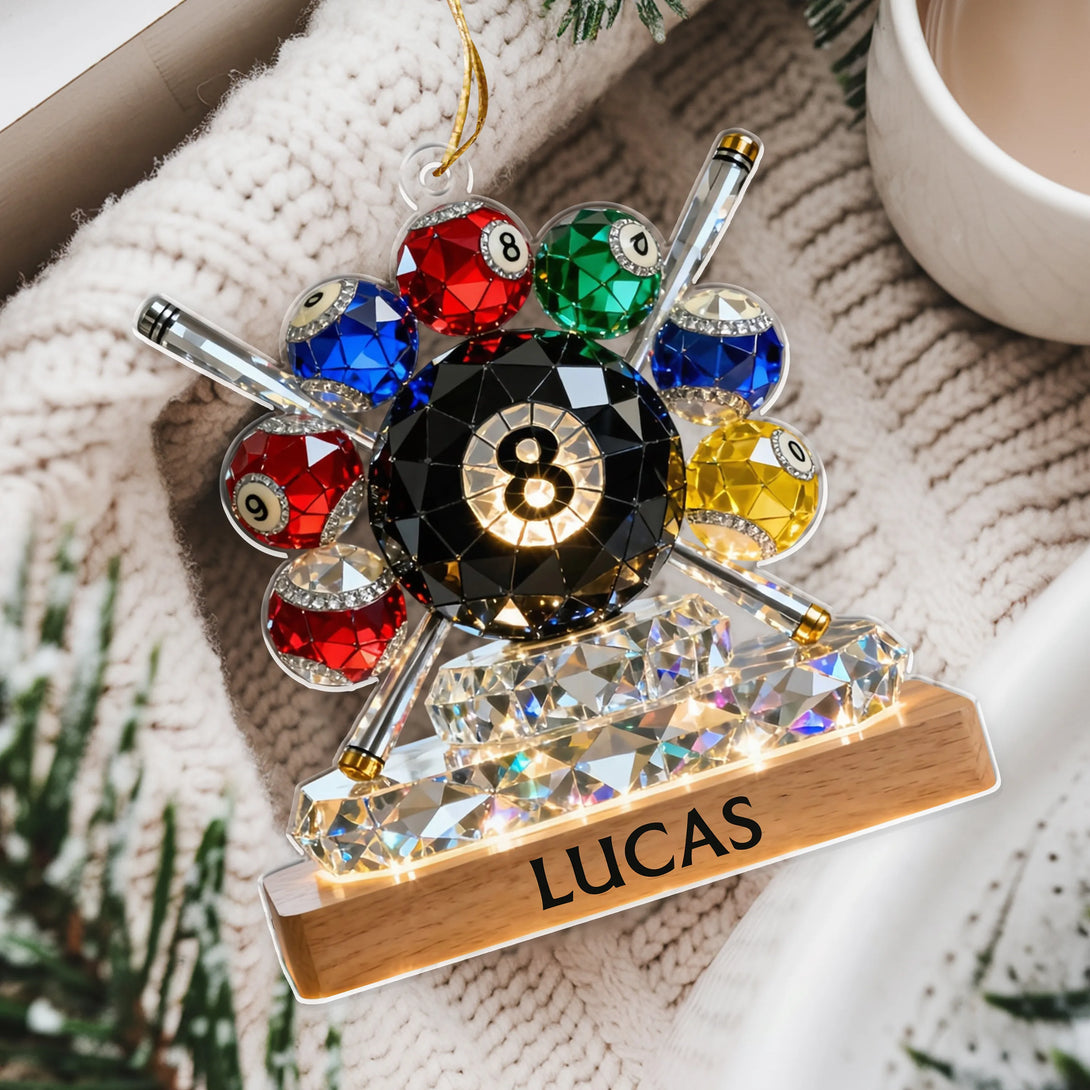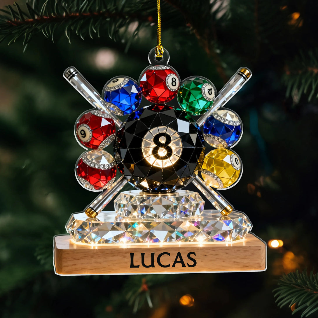Featuring a classic billiard rack with cue balls and a cue stick, this ornament is the perfect tribute to anyone who loves pool, snooker, or billiards — whether they play casually with friends or compete like a pro. Add a custom name to the base to create a keepsake that feels personal, meaningful, and display-worthy all year long.