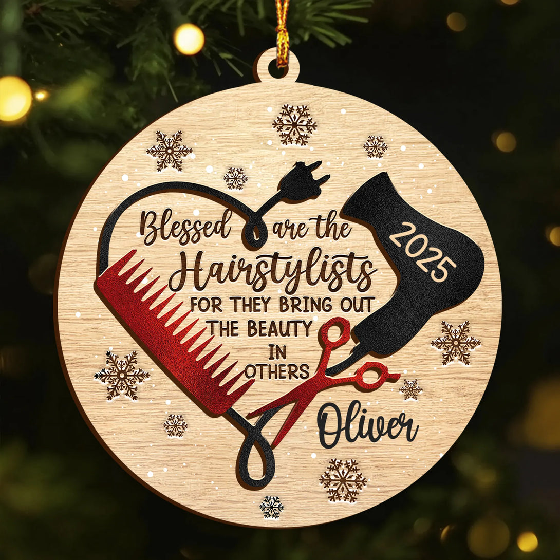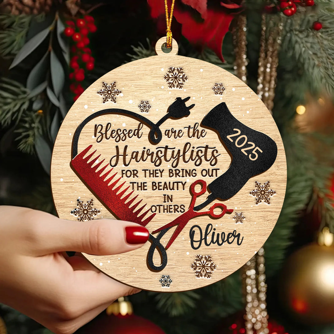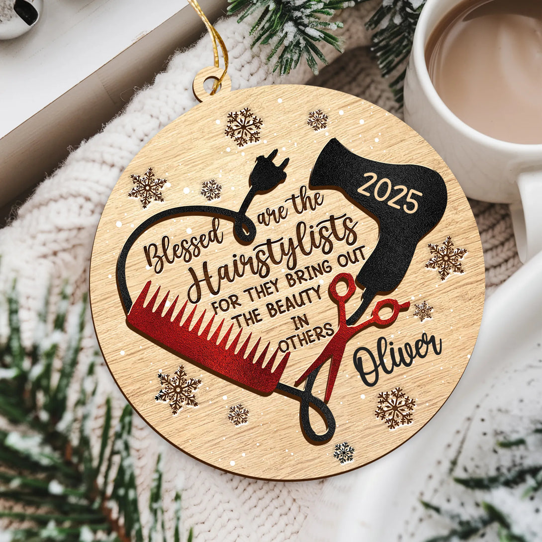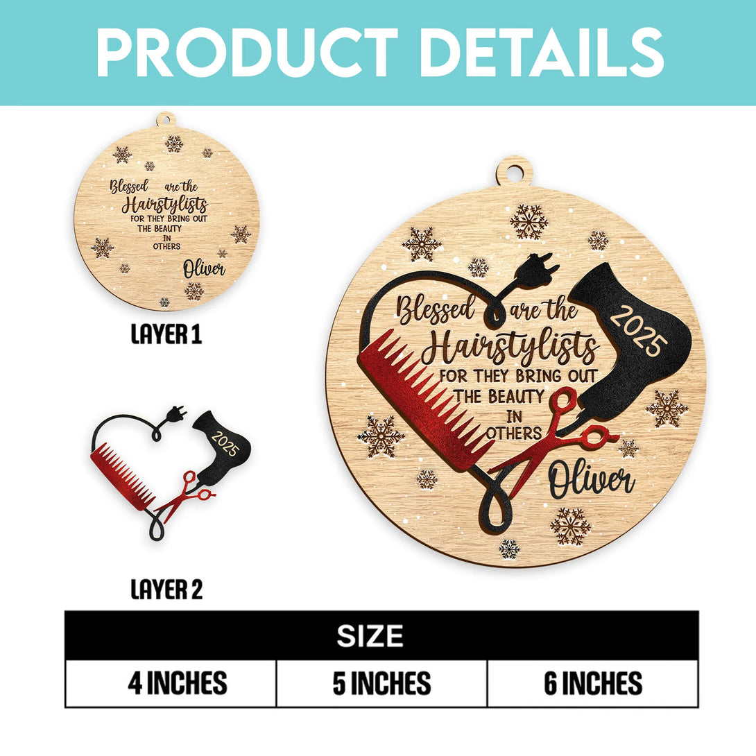 Personalized Blessed Are The Stylist 2-Layered Wood Ornament