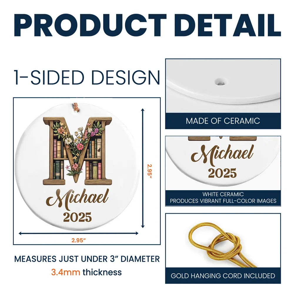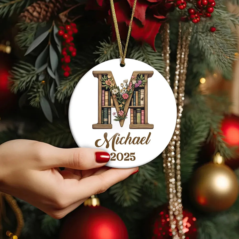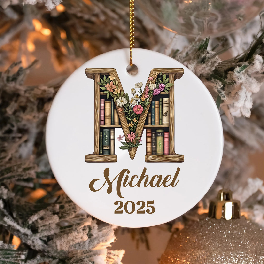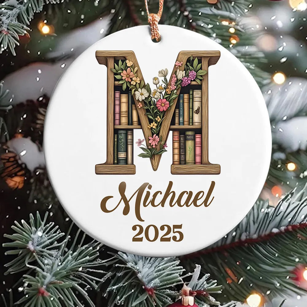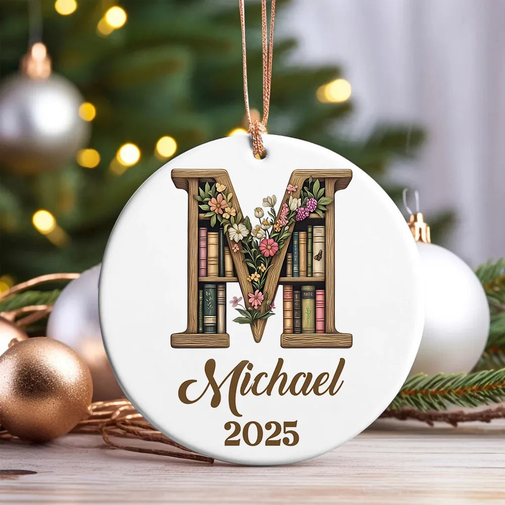 Celebrate your love for books and meaningful holiday traditions with our Personalized Book Letter Name Ceramic Ornament. Designed with an elegant bookshelf-inspired initial filled with books and flowers, this ornament is a timeless keepsake.