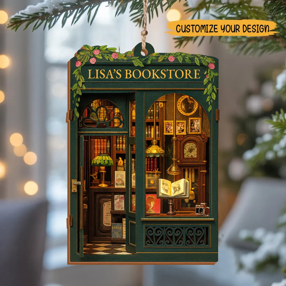 Personalized Bookstore 1-Layered Wood Ornament β Custom Christmas Tree Decoration for Book Lovers