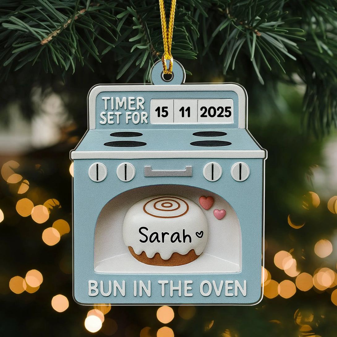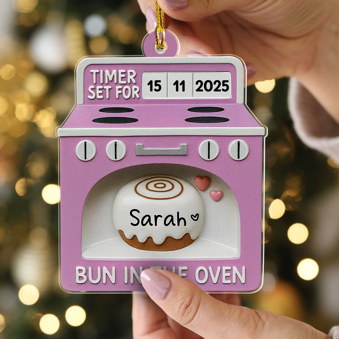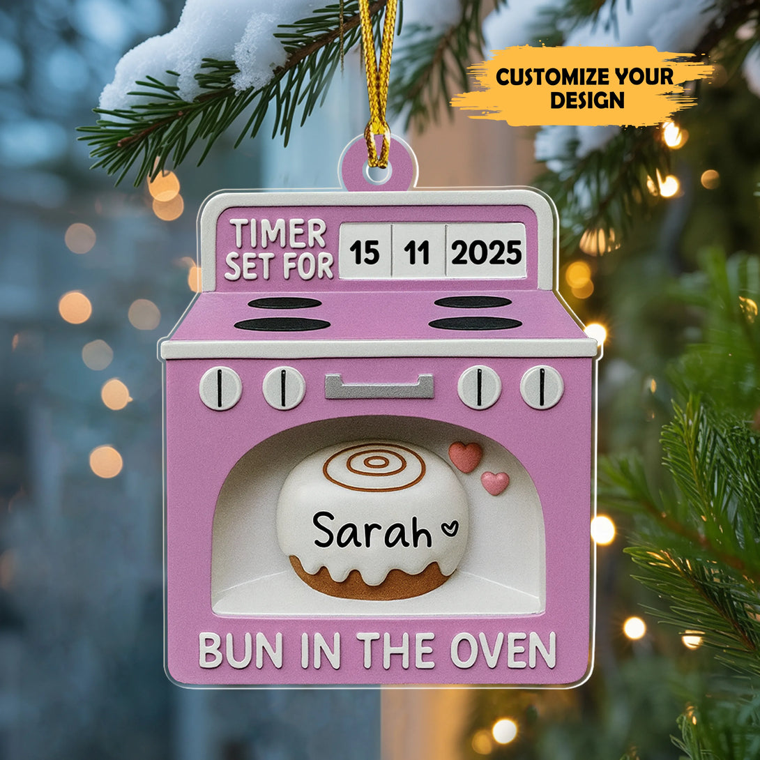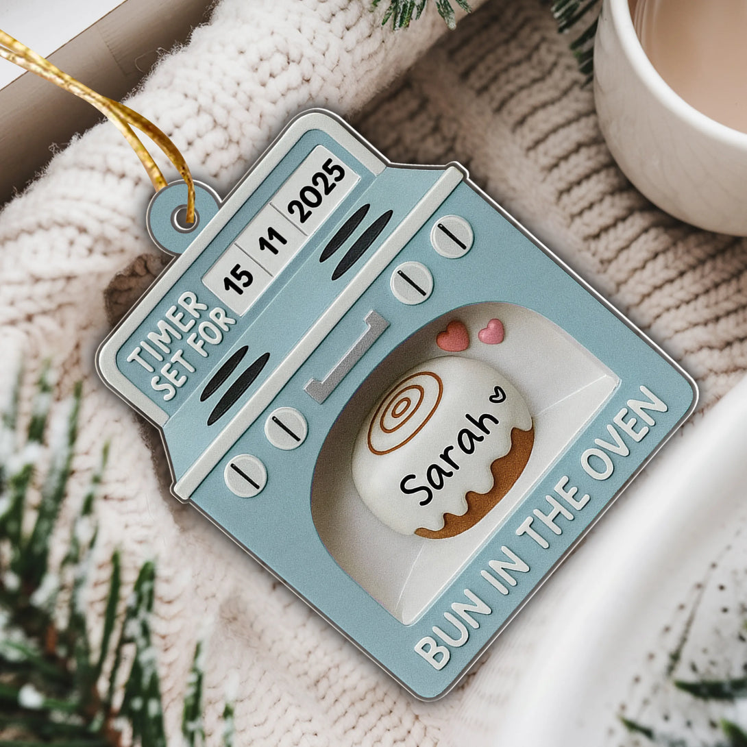 Personalized Bun in the Oven Pregnancy Announcement Acrylic Ornament – Custom Baby Due Date Christmas Decoration