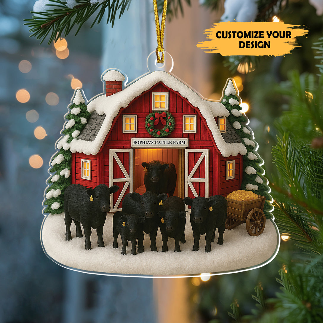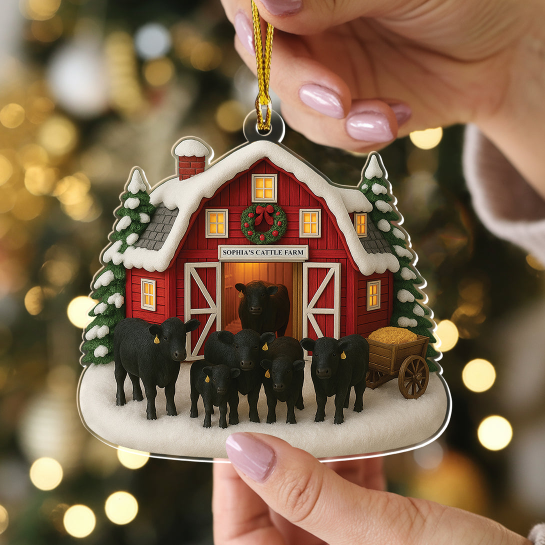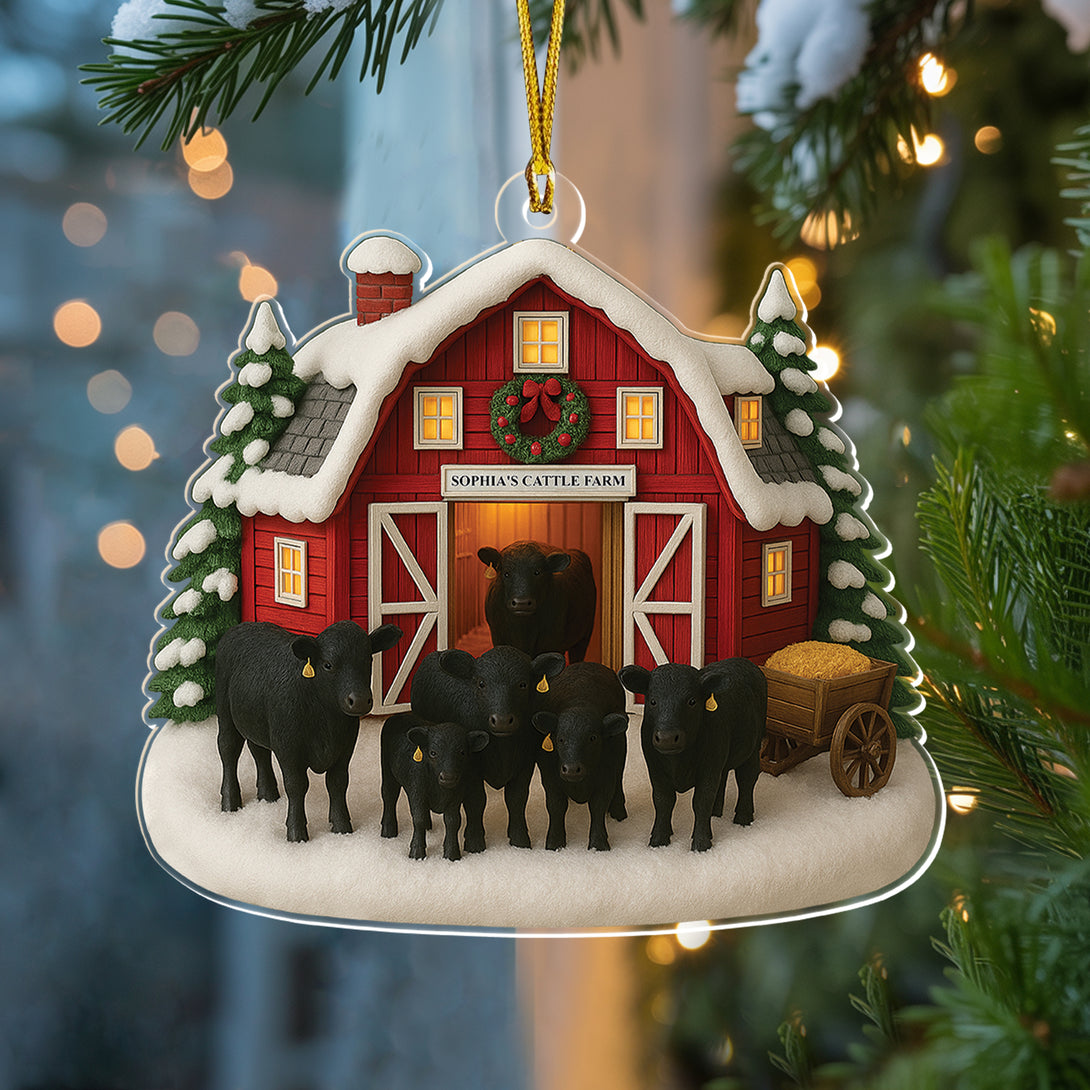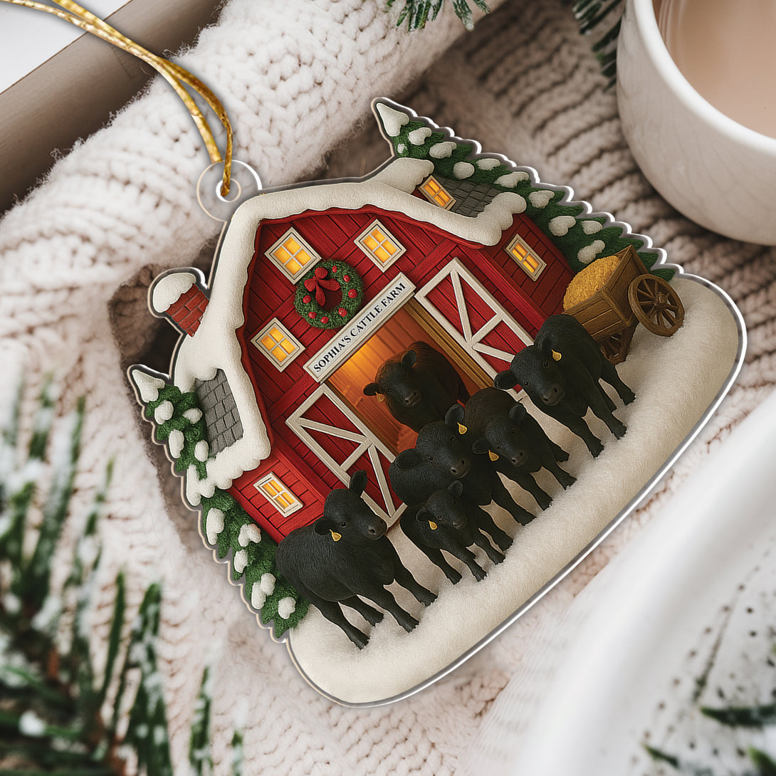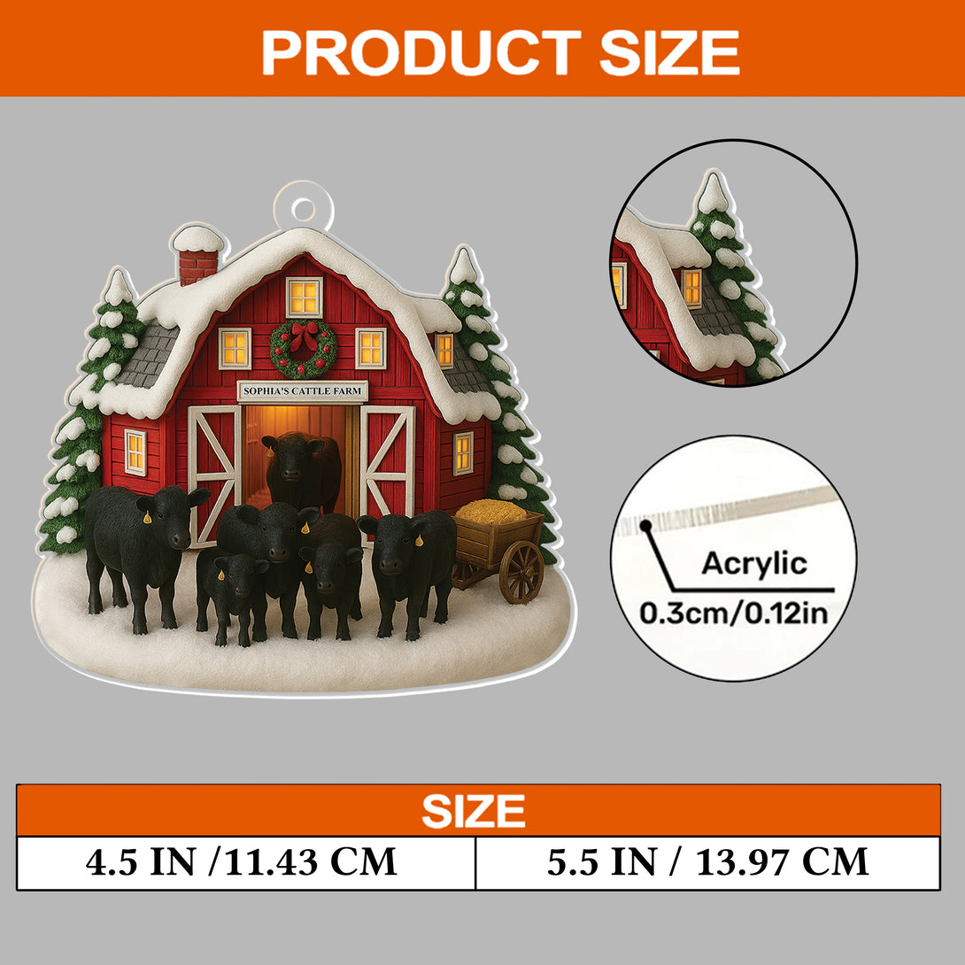 Personalized Cattle Farm Acrylic Ornament – Personalized Farmhouse Christmas Barn and Cattle, Custom Wood Ornament, Gift For Farmers
