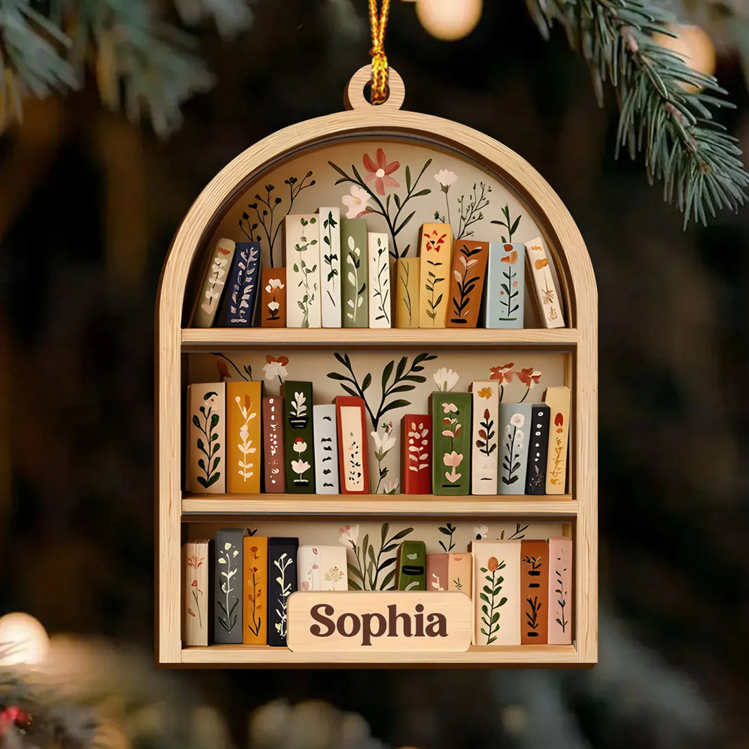 Celebrate the magic of Christmas with this charming Personalized Bookshelf Ornament! Crafted from high-quality wood with a beautiful 2-layered design, it showcases a cozy bookshelf filled with floral-patterned “books” — a perfect keepsake for book lovers. Customize it with any name to make it uniquely yours or as a thoughtful gift for family and friends.