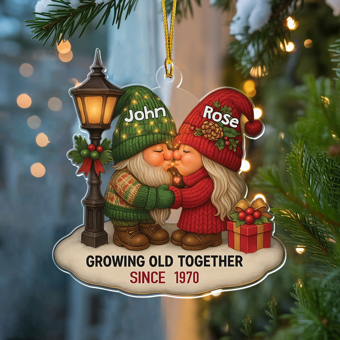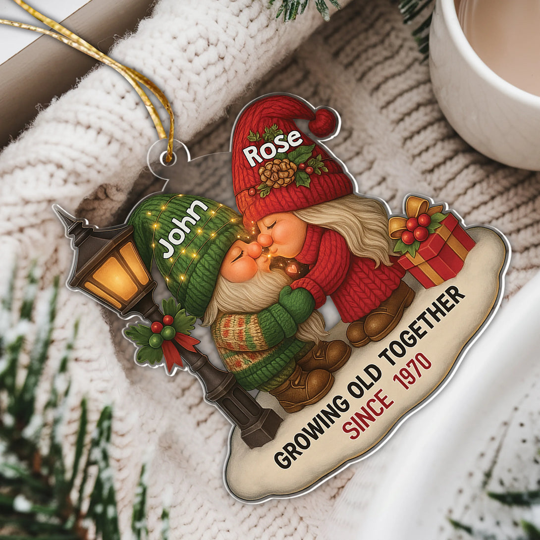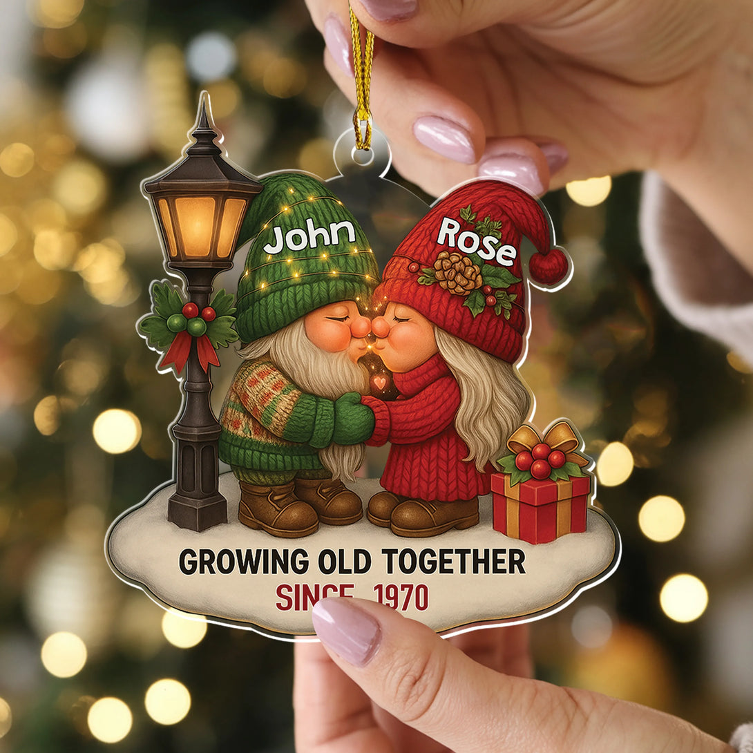 Growing Old Together Acrylic Gnome Ornament – Romantic Gift for Couples