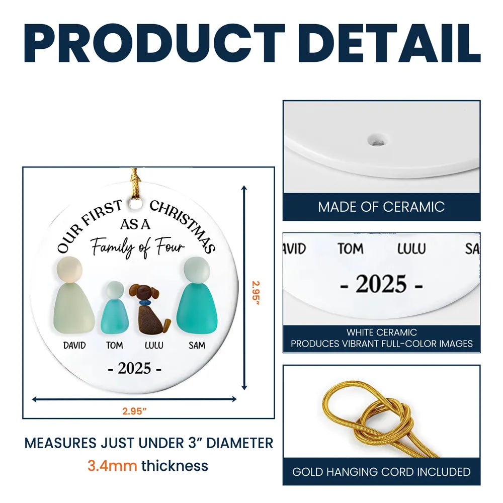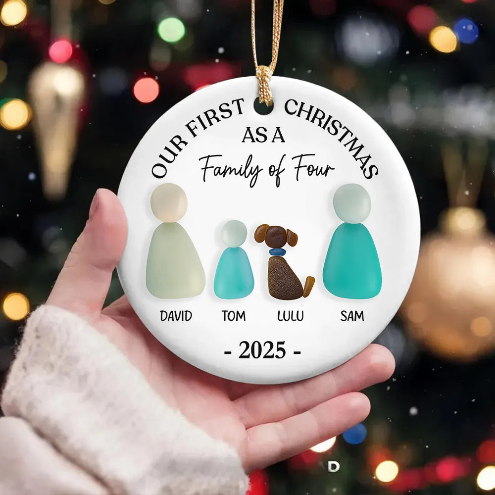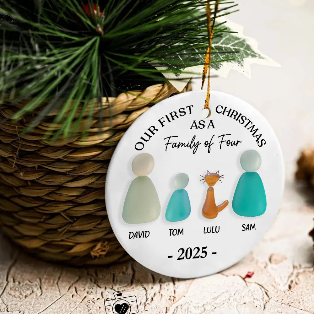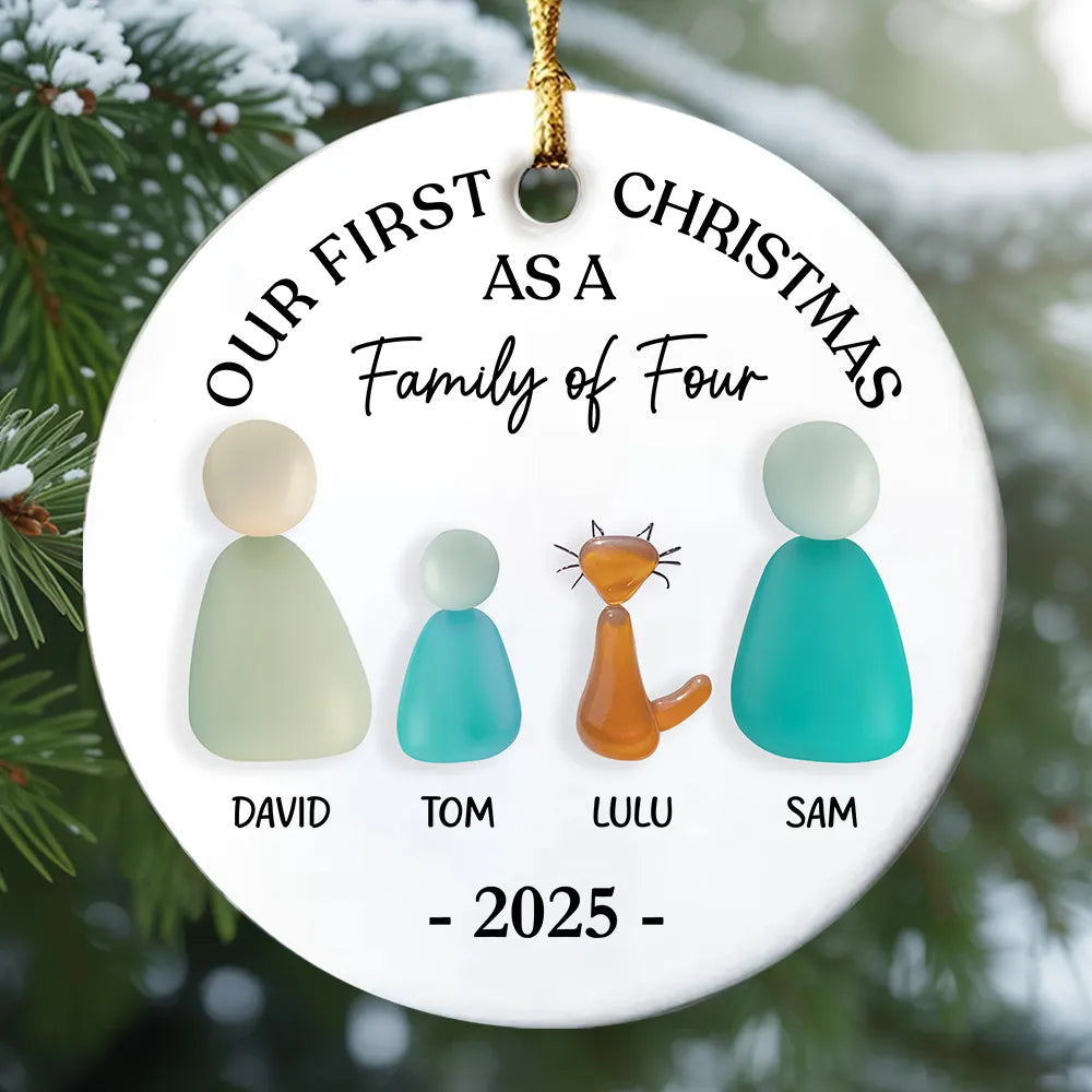 Celebrate your family’s first Christmas together with this charming personalized ceramic ornament! Featuring adorable sea glass-style figures representing each family member – including your furry friend – this ornament can be customized with names and the year. Perfect for hanging on your tree or giving as a heartfelt gift, it captures a special moment that will be treasured for years to come.
