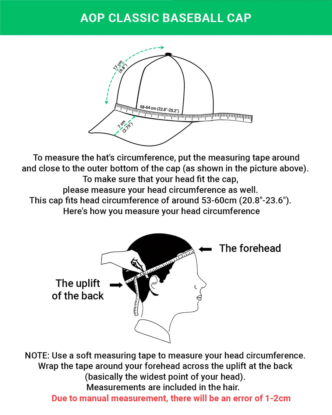 Adjustable snap closure, one size fits most (58–64 cm / 22.8″–25.2″)