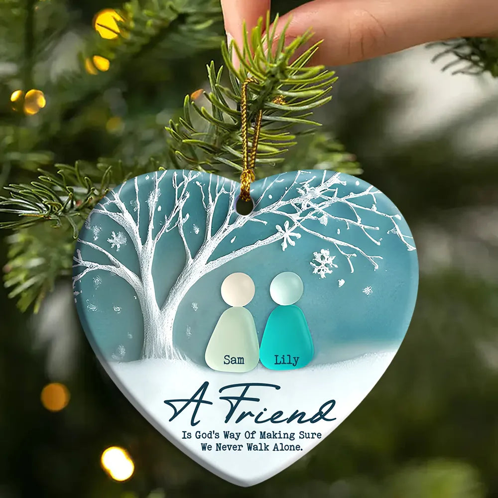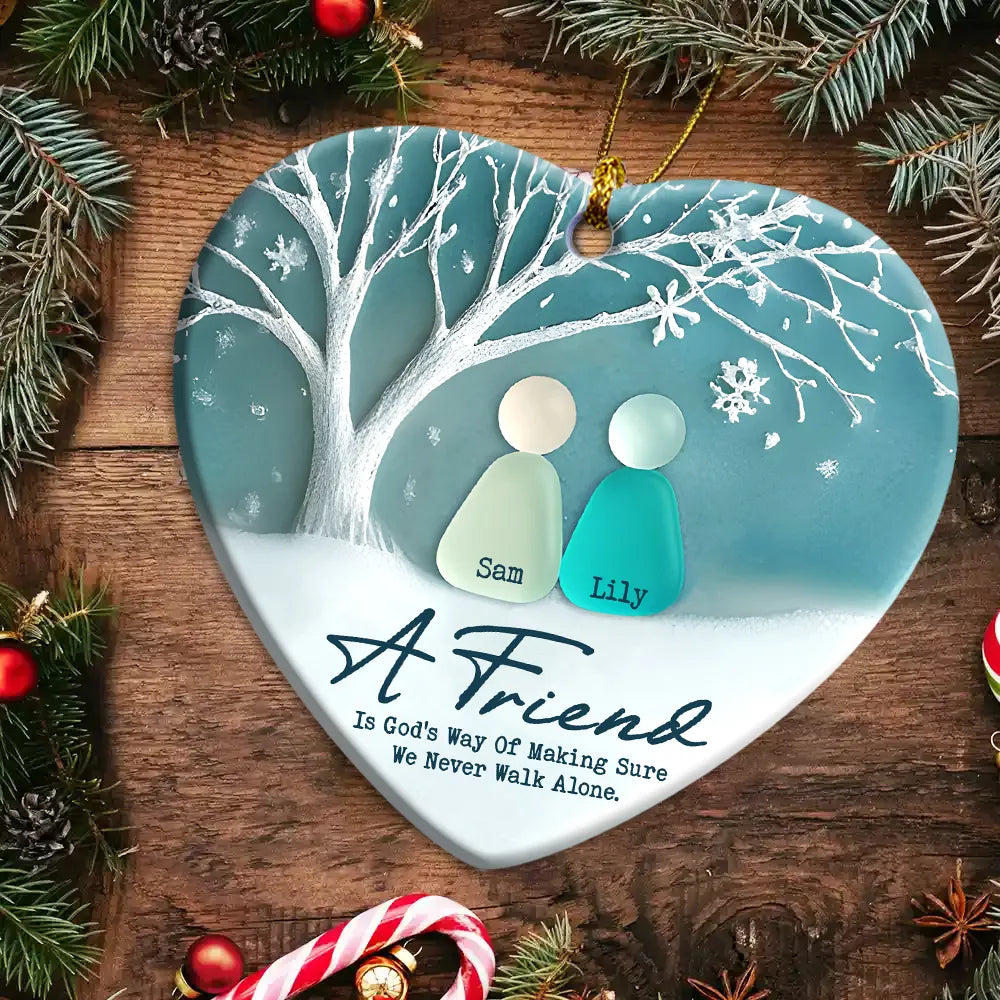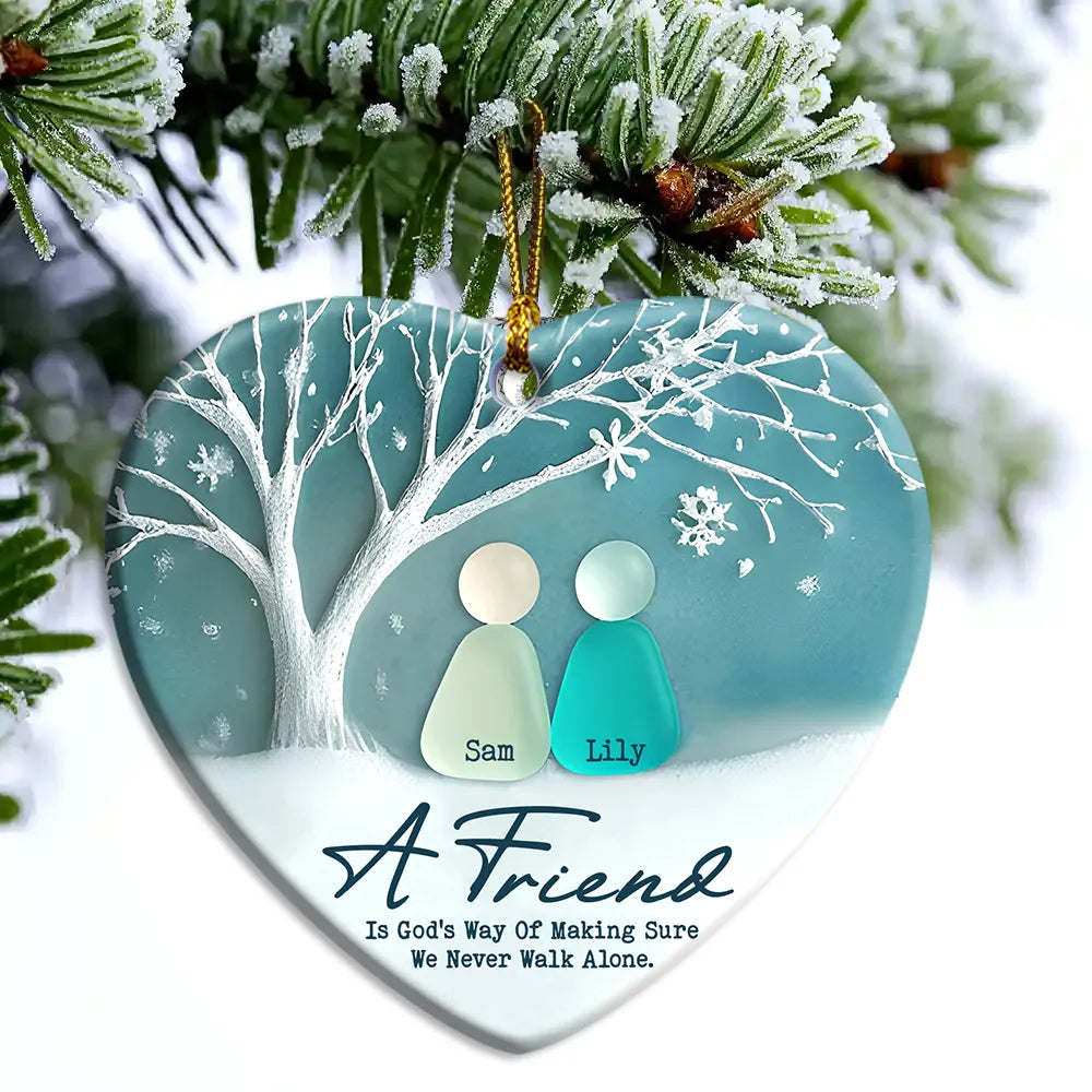 Personalized Growing Old Together Couple Sea Glass Ceramic Ornament