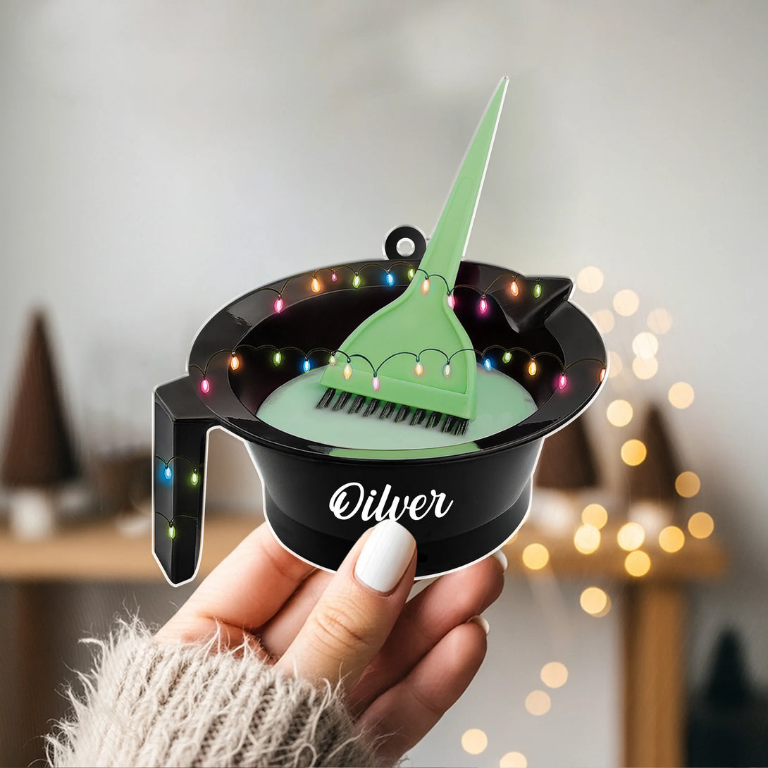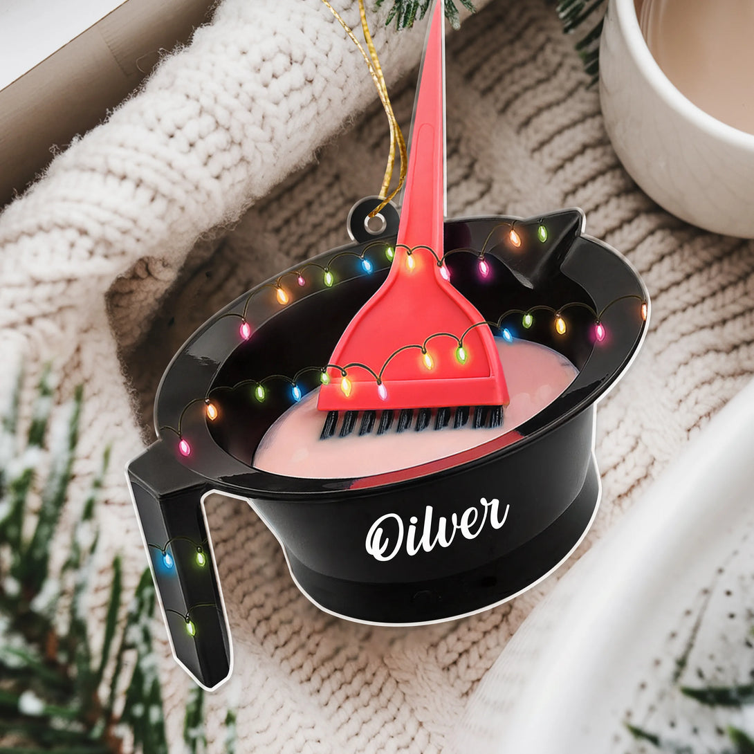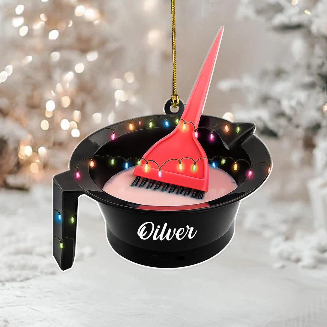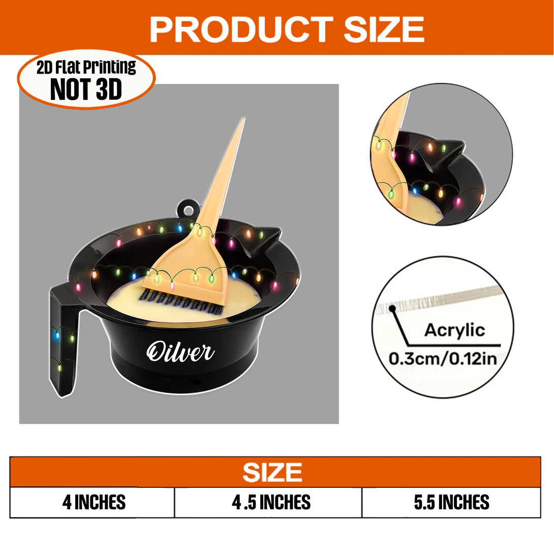 Celebrate the season in true stylist fashion with this Personalized Hairstylist Christmas Acrylic Ornament, designed in the shape of a coloring bowl and brush – a fun nod to the world of hair coloring and salon creativity. Perfect for colorists, hairstylists, and salon owners, this ornament adds a touch of holiday charm to your workspace or Christmas tree. Customize it with a name or salon name to make it a thoughtful keepsake or gift.