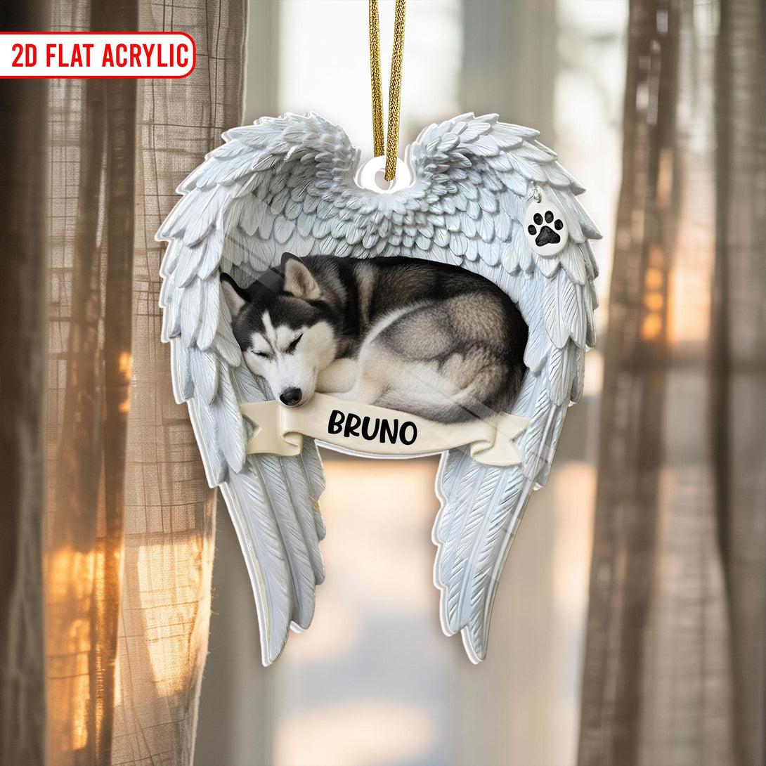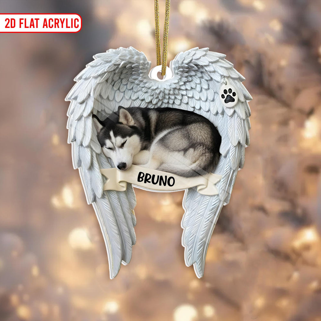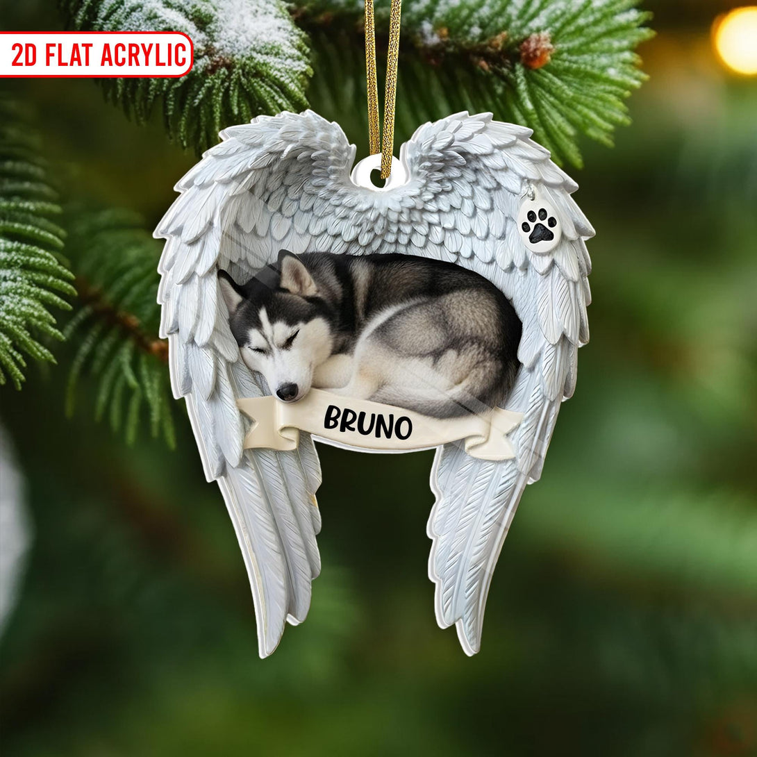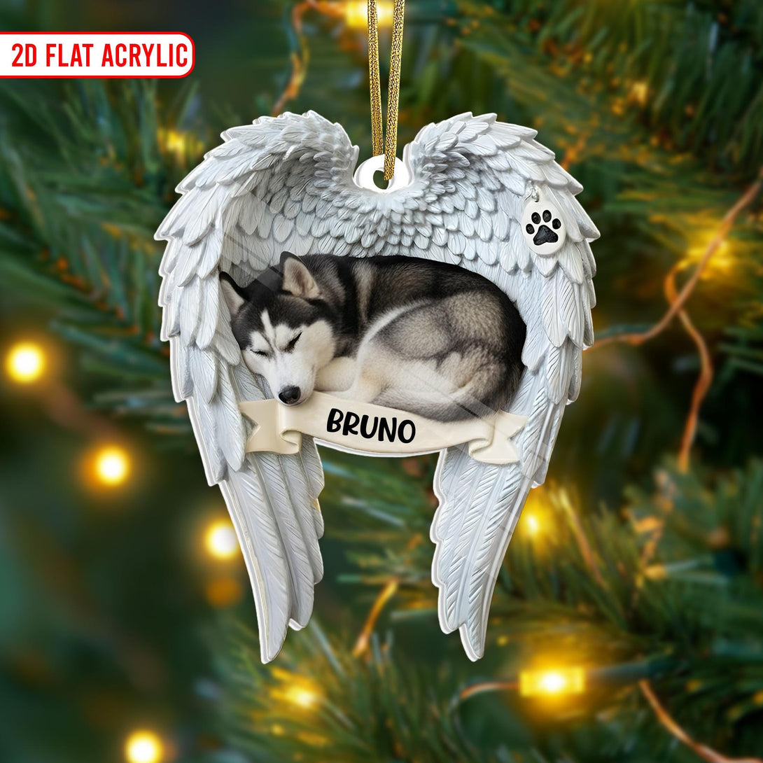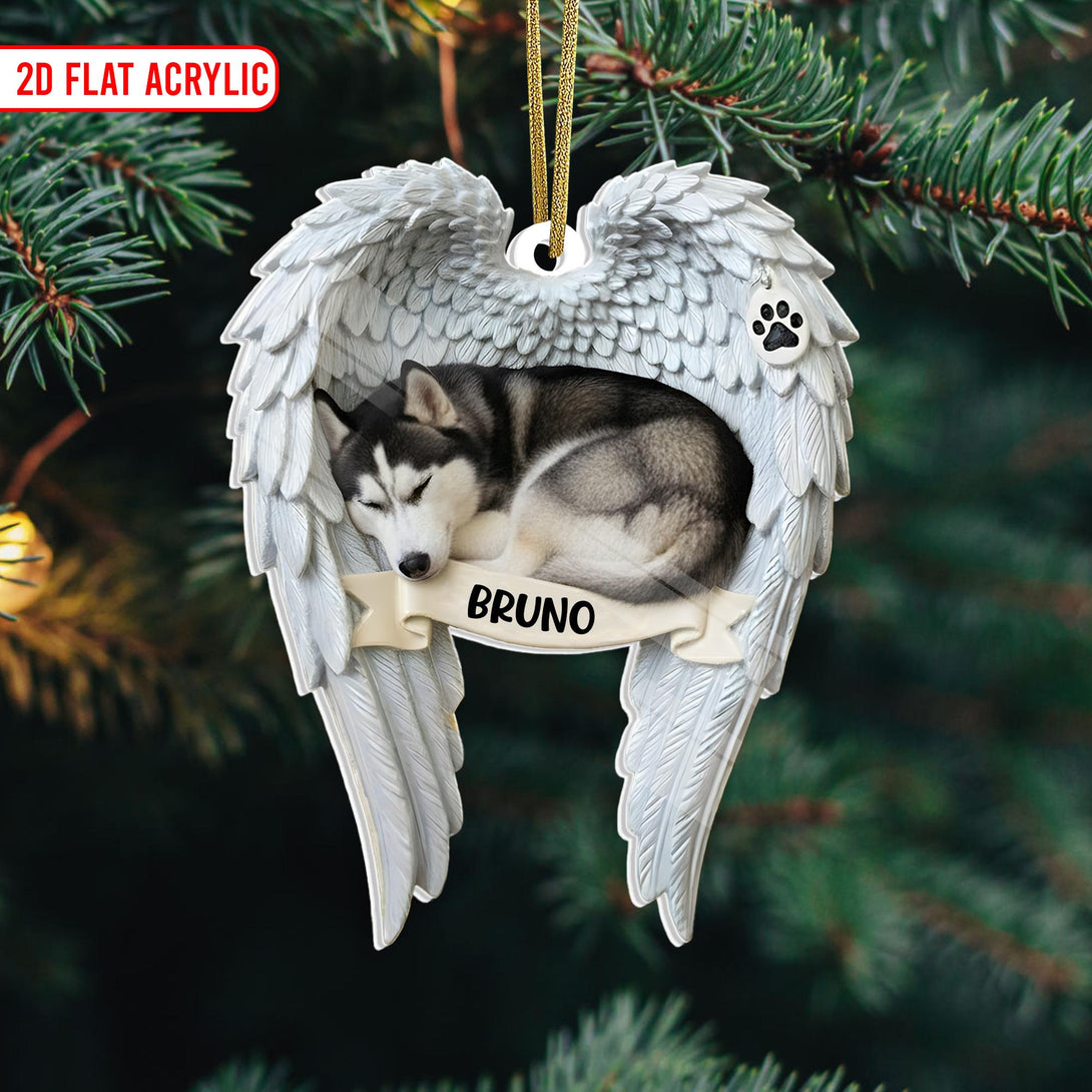 Personalized Husky Memorial Ornament With Angel Wings - Custom Dog Loss Christmas Ornament Gift
