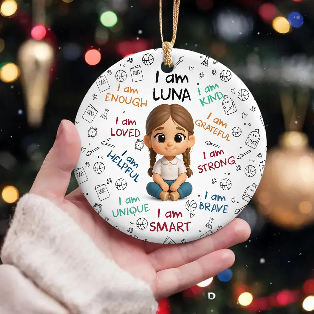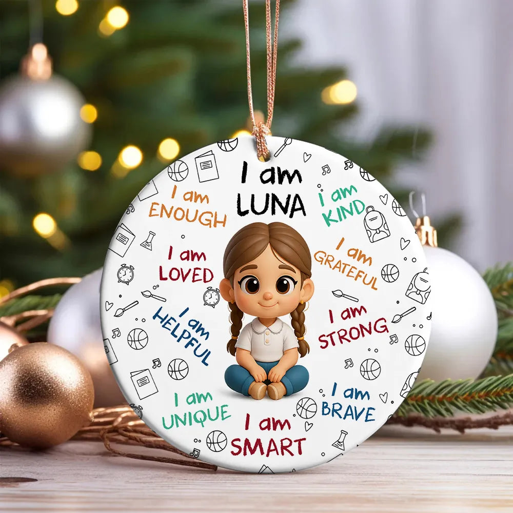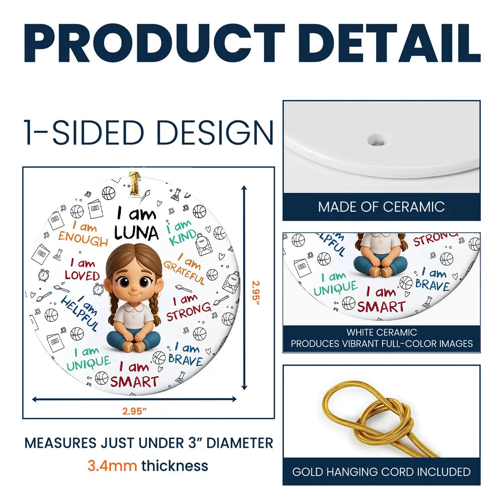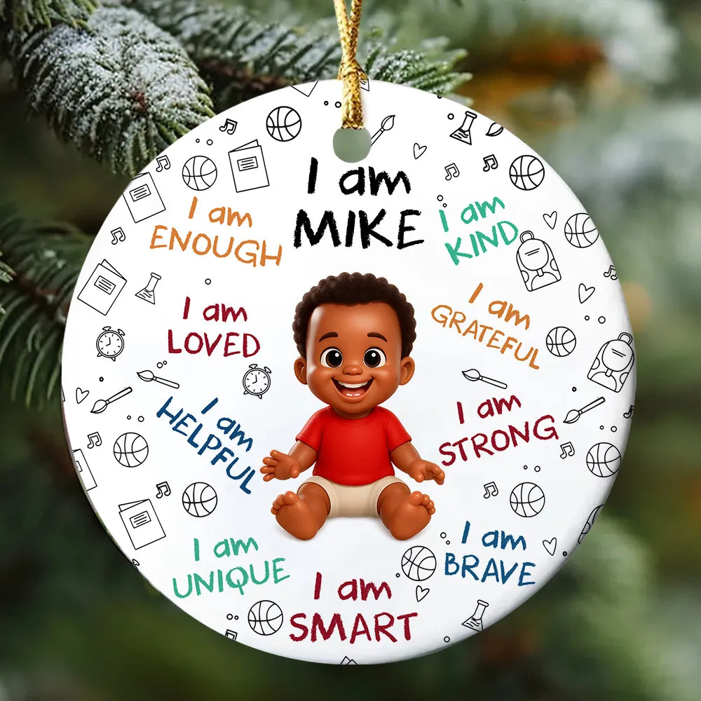 Personalized I Am Enough, Loved, Helpful, Unique, Smart Baby Circle Ceramic Ornament