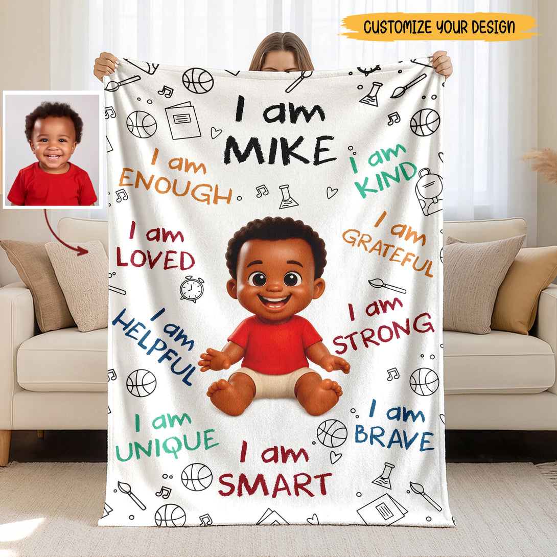 Personalized I Am Enough, Loved, Helpful, Unique, Smart Baby Fleece Blanket