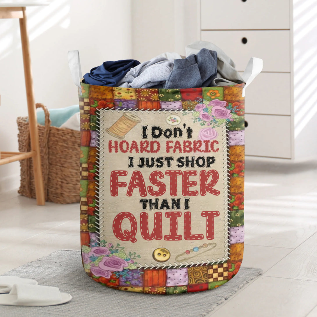 Add a touch of sewing humor to your laundry routine with this fun and functional laundry basket! Featuring the playful quote "I Don’t Hoard Fabric, I Just Shop Faster Than I Quilt", this basket is the perfect gift for sewing and quilting lovers.