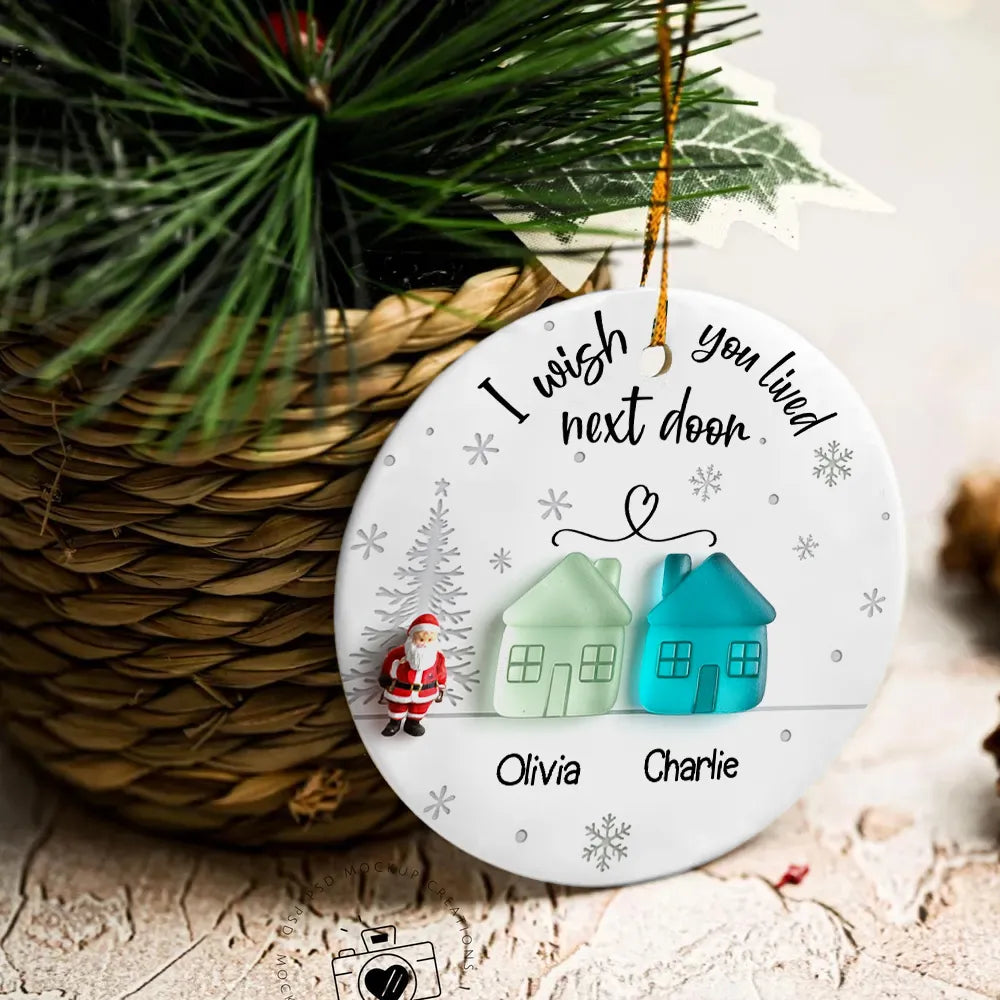 Personalized I Wish You Lived Next Door Bestie Circle Ceramic Ornament